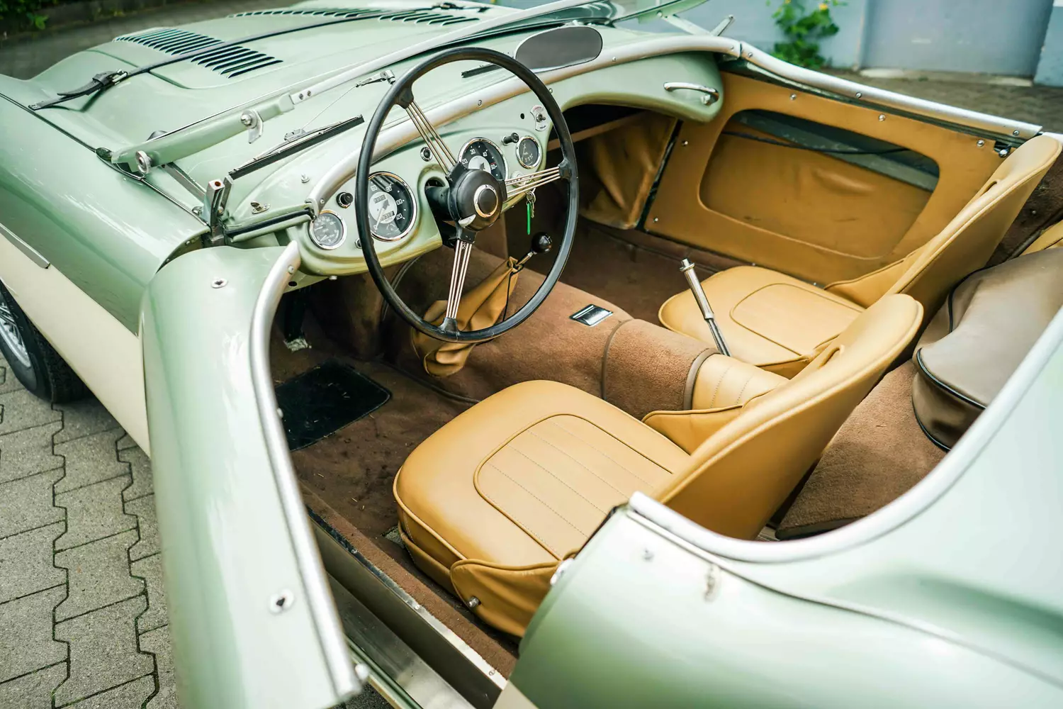 Die British Motor Corporation, auch bekannt als BMC, repräsentierte von 1952 bis 1968 im wesentlichen die Automobilindustrie Englands. Unter den Markennamen Morris, Austin, MG und eben Austin-Healey produzierte das Unternehmen, als größter britischer Fahrzeughersteller, seine Fahrzeuge. Der Austin-Healey 100 (interne Bezeichnung BN1) wurde als Roadster von 1953 bis 1959 produziert. Die Modellbezeichnung “100” erhielt der Sportwagen aufgrund der Höchstgeschwindigkeit von konstanten 100 Meilen in der Stunde, die zur damaligen Zeit von nur sehr wenigen Fahrzeugen erreicht wurde.