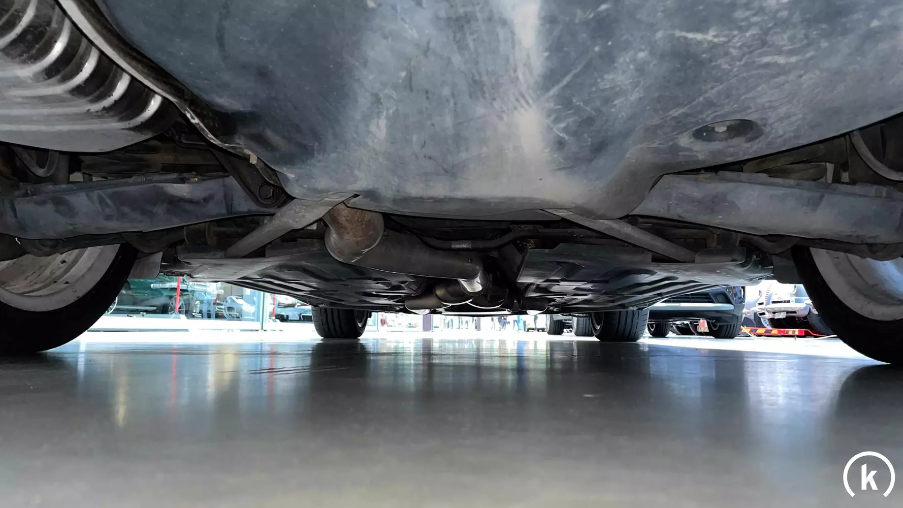 Entsprechend der Laufleistung zeigt sich auch der Unterbodenzustand dieses Cabriolets: Negative Auffälligkeiten können offensichtlich nicht beanstandet werden.