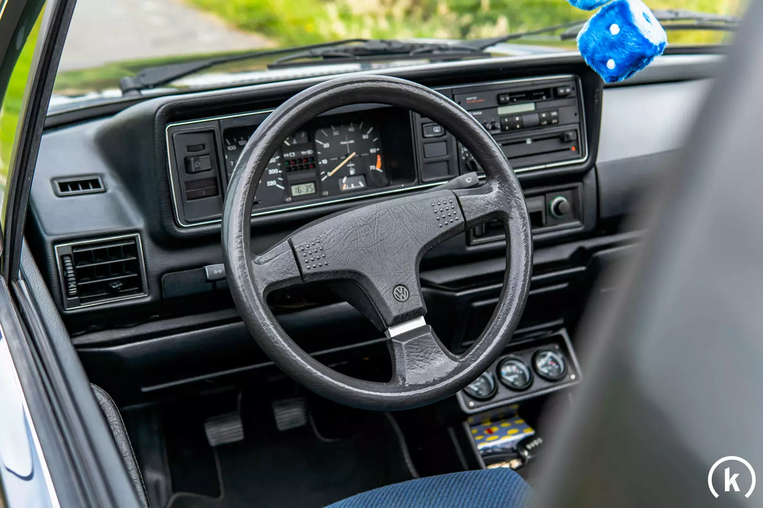 Das Cabrio ist äußerlich in sehr gutem Zustand, nichts wurde modifiziert, verbastelt oder getunt. Dem rollenden Freudenspender sind seine 37 Jahre, kaum anzusehen. Auf den Bildern haben wir die kleineren Mängel am blauen Lack aber gut dokumentiert. Von den typischen Roststellen ist der Golf größtenteils verschont geblieben. Für den besseren Überblick haben wir diese Stellen ebenfalls bestmöglich fotografiert. Das Verdeck ist 2021 erneuert worden, genauso wie die Außenspiegel, alle Fenstergummis, Chromzierleisten und die Front- & Heckstoßstange (Chrom).