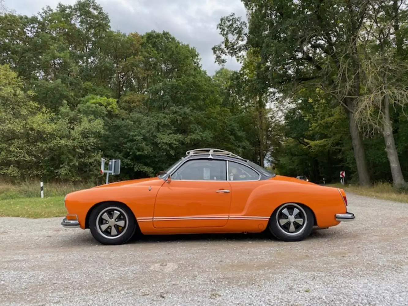 Cooler Ghia! Auch, wenn er nicht komplett original ist, hat er irgendwie was mit dem Dachträger, der Schräglenkerachse und den Fuchsfelgen...Farbe wäre genau meins