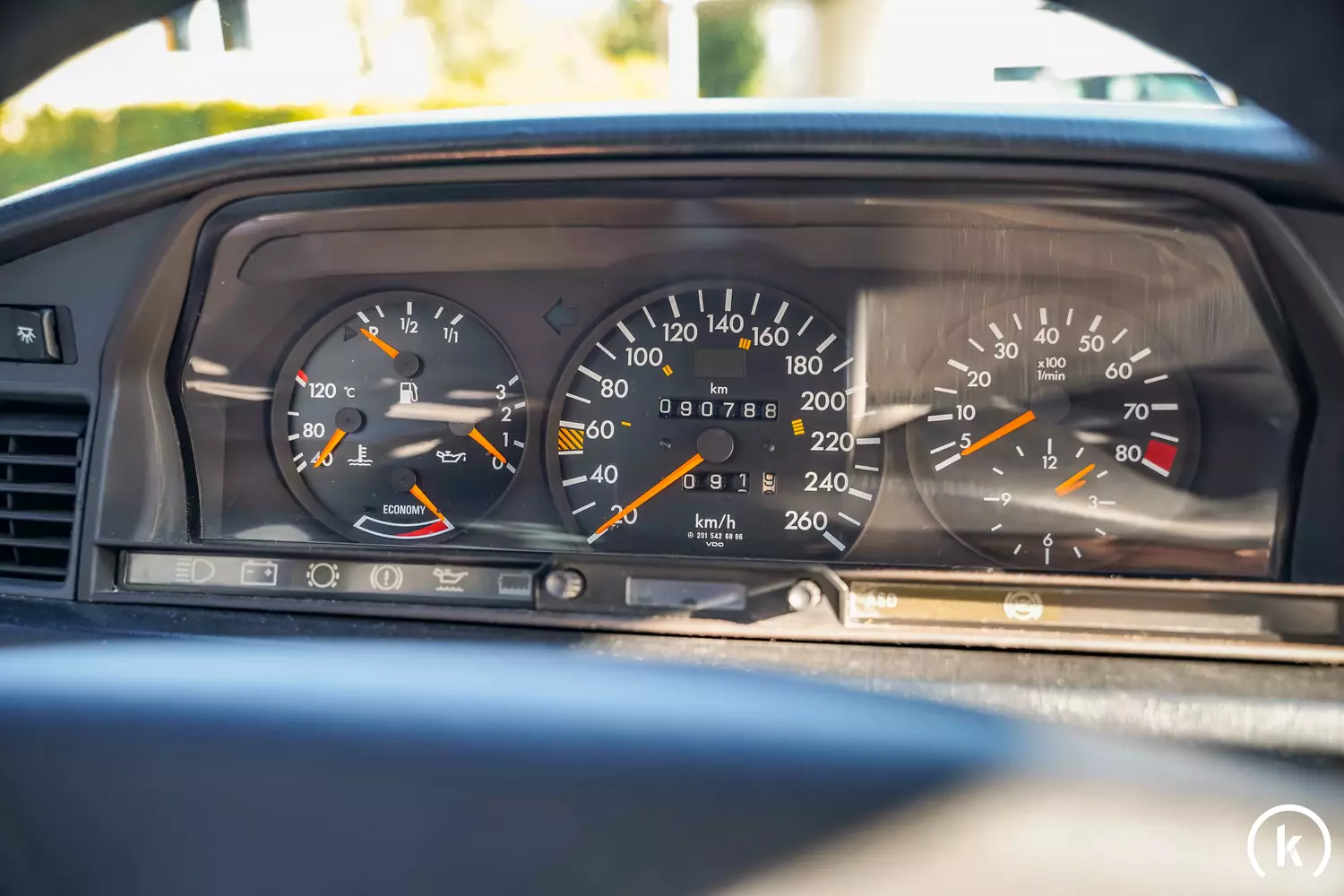 Im Jahr 2005 fand eine Korrektur des Tachostandes von 143.000 auf 84.000 Kilometer statt, da dem Verkäufer zufolge der Tacho und diverse Kleininstrumente damals bei der Firma VDO in Frankfurt überholt wurden. Momentan stehen somit 90.790 Kilometer am Tachometer des Mercedes-Benz. Durch verschiedene vorliegende Dokumente kann die Geschichte des 2.5-16 Evo I annähernd belegt werden und die Gesamlaufleistung ist somit nachvollziehbar.