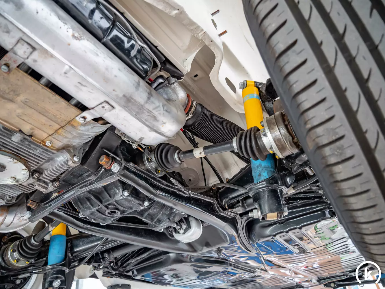 Der luftgekühlte Vierzylinder-Boxer-Motor gibt satte 50 PS an die Hinterräder ab, welche sich sauber durch ein 4-Gang Schaltgetriebe dosieren lassen. Wartung und Service hat der Verkäufer, laut eigenen Angaben, für die Auktion frisch durchgeführt. Bei der Restauration wurde auch der Unterboden neu lackiert und strahlt seitdem in glänzendem Schwarz. Nötige Reparaturen oder Mängel gibt der Verkäufer keine an. Das Fahrzeug wurde bis auf die letzte Schraube zerlegt und mit Neuteilen und überholten Altteilen neu aufgebaut. Der Motor und das 4-Gang Getriebe sind komplett neu aufgearbeitet und nach der Überholung ca. 1.000 km gefahren. Alle Komponenten am Fahrzeug wurden geprüft, gereinigt, erneuert oder restauriert.
