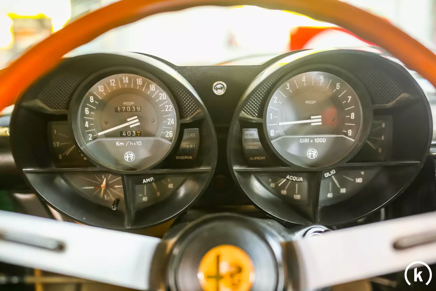 Der Achtzylindermotor mit vier obenliegenden Nockenwellen und mechanischer Spica-Saugrohreinspritzung (SPICA: Società Pompe Iniezione Cassani & Affini) stammte von dem im Rennsport eingesetzten Alfa Romeo Tipo 33. Das Aggregat leistet in dieser Variante 200 PS und verfügt über einen Hubraum von 2593 cm³. Geschaltet wird in dem Coupé manuell über das 5-Gang-ZF-Schaltgetriebe. Den letzten Service erhielt das Fahrzeug im August 2021. An durchgeführten Reparaturen führt der Verkäufer die Erneuerung der Kupplung und der Reifen. Mängel liegen im Bereich von Technik und Motor nicht vor, sodass momentan auch keine weiteren Arbeiten anstehen.