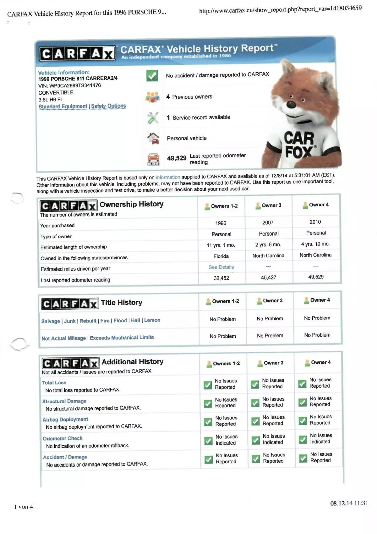 Anbei finden Sie das CarFax des Porsches. Weitere Dokumente sind in der Galerie.