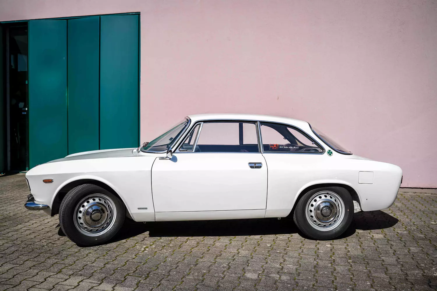 Die im originalen Alfa Romeo-Farbton „biancospino“, einem edlen Weißton (Farbcode 013), lackierte Karosserie ist frei von jeglichen Roststellen, Beulen, Macken oder sonstigen Beeinträchtigungen. Nur die hintere Stoßstange fehlt, allerdings wurde sie absichtlich abgenommen. Nicht weil sich dahinter etwas Schlimmes verbirgt, sondern rein aus optischen Gründen. Das macht den veloce (Den Schnellen) ancora più veloce, also noch schneller. Zumindest gefühlt. Auf Wunsch kann die hintere Stoßstange aber wieder angebracht werden.