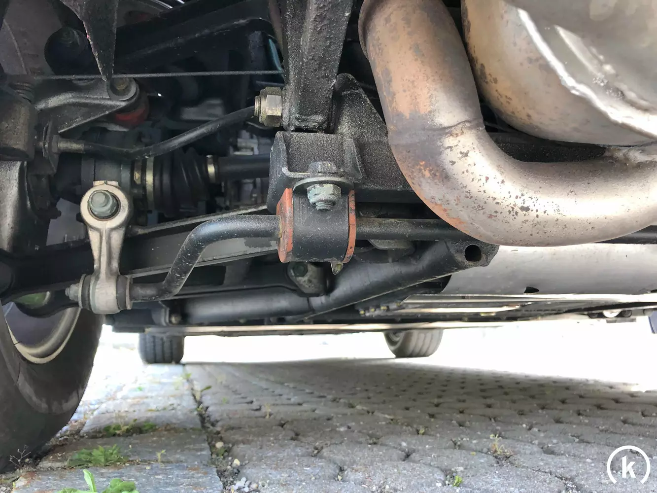 Die Unterseite des Wagens entspricht der Laufleistung, Beschädigungen können hier offensichtlich nicht ausgemacht werden. Wer in einem Ferrari sowohl die (für Ferrari-Verhältnisse) praktischen als auch die Genussaspekte erfüllt haben möchte, der ist mit dem 2+2 sitzigen Mondial – welcher obendrein als letztes von Ferrari produziertes Modell mit Mittelmotor und 4 Sitzplätzen zählt – gut bedient.