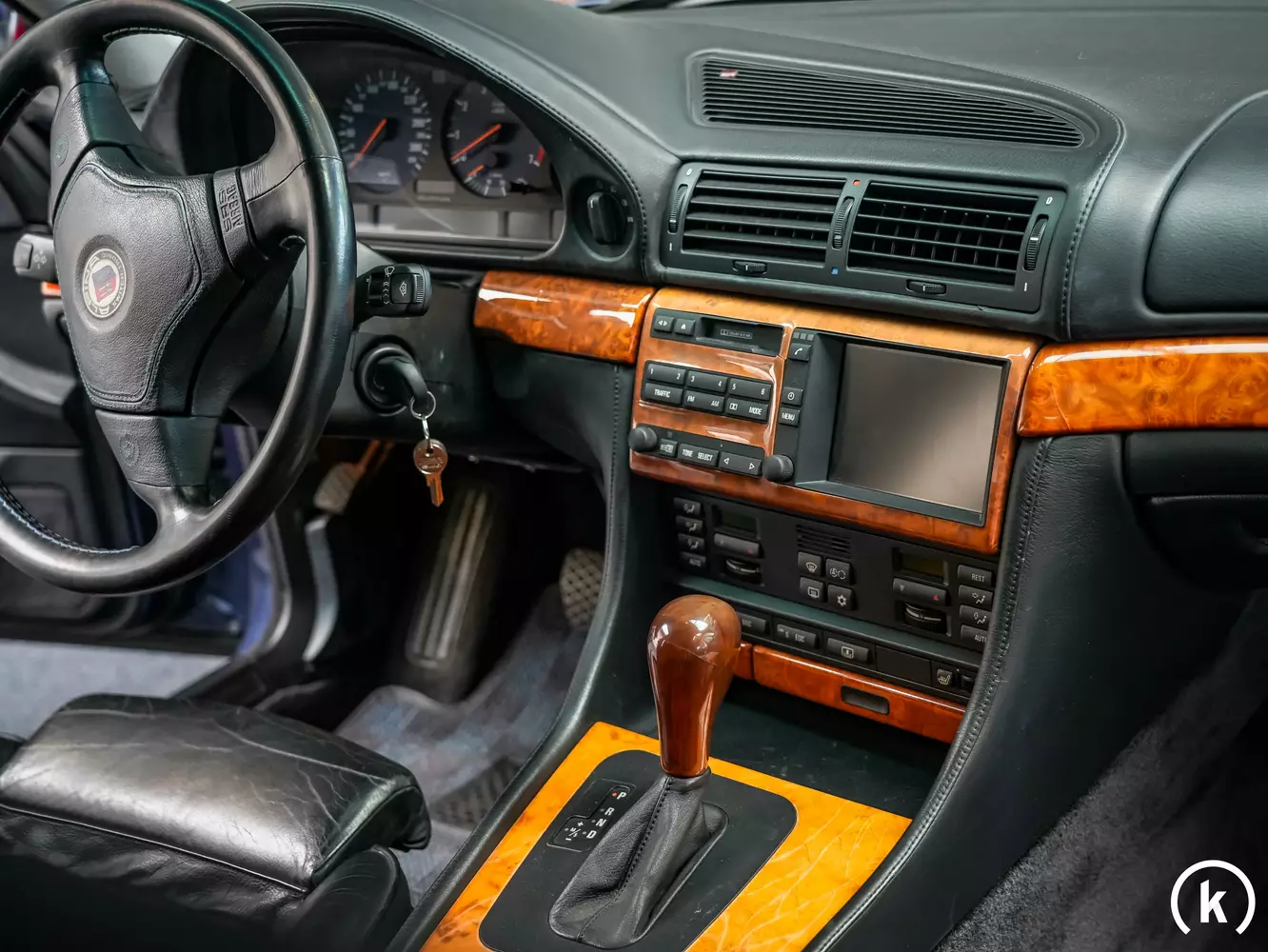 Reichlich Leder kann dem Alpina-Innenraum entnommen werden: Das gesamte Interieur ist mit einer Fülle von Leder, Holz und Details in Alpina-typischen Farben (Blau und Grün) verziert. Das Holz und Leder kommen dabei aus der BMW-Schmiede und wurden dann von Alpina veredelt. Nach Rücksprache mit dem Verkäufer sind diverse Gebrauchsspuren im Inneren des B12 5.7 präsent: So sind beispielsweise ein paar Klarlackrisse im Holz zu finden und das Leder vom Fahrersitz zeigt sich etwas beansprucht. Im Großen und Ganzen kann dem Innenraum angesichts der Gesamtlaufleistung aber eine annehmbare Verfassung zugesprochen werden. Folgende Ausstattung befindet sich an Bord dieses Alpina B12.