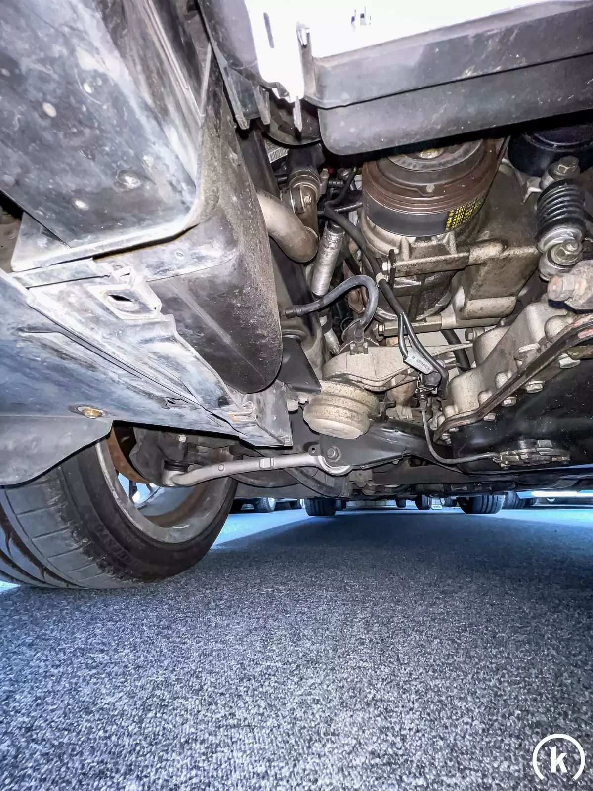 Überaus gesund vom Befinden her präsentiert sich die Unterseite des Alpina: Unsachgemäß durchgeführte Arbeiten oder Mängel, welche den guten Eindruck trüben könnten, sind augenscheinlich nicht existent. Luxus, Leistung und Drehmoment bietet ein Alpina B12 im Überfluss – das elektronisch gesteuerte Fahrwerk sorgt für die passende Abstimmung egal auf welchem Straßenuntergrund man gerade fährt. Mit der reichhaltigen Ausstattung dieses B12 5.7 und dem Klang des V12-Motors wird jede Ausfahrt mit dieser Limousine zum Genuss – zudem sorgen die 12 Zylinder stets für ausreichend Leistungsreserven.