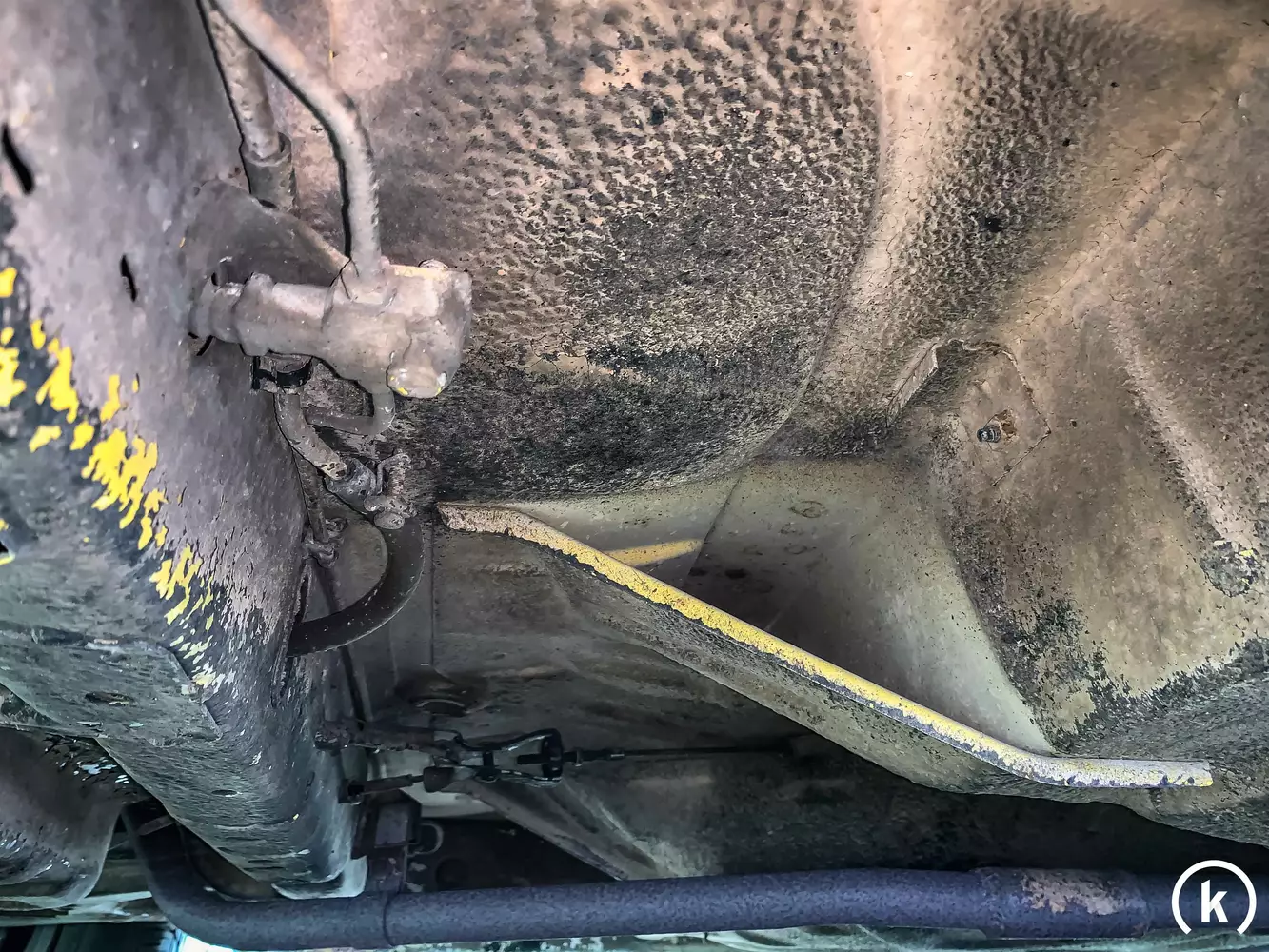 Der Unterboden ist ungeschweist und in einem originalen Zustand. Außerdem ist hervorzuheben, dass es keinen Reparaturstau gibt und die Stoßdämpfer hinten erneuert worden sind.