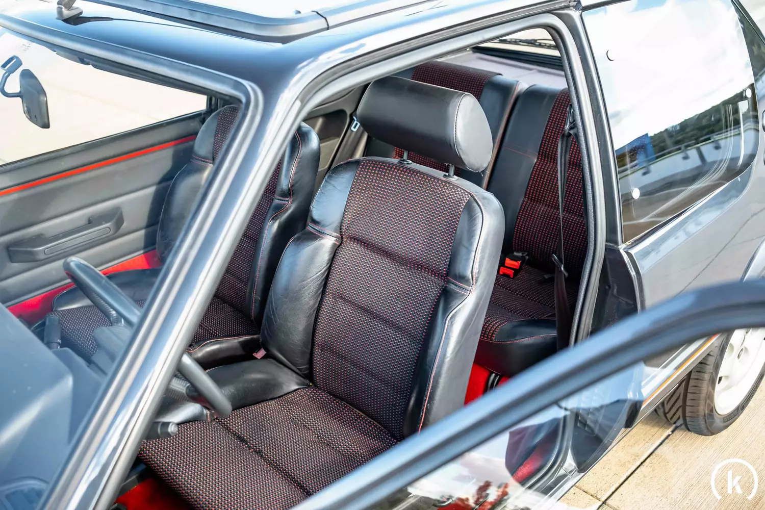 4 neue Reifen wurden erst kürzlich auf den originalen GTI-Alufelgen aufgezogen, die Bremsen wurden komplett inklusive der Bremsleitungen überholt. Fahrwerkstechnisch sind keine Abweichungen vom Originalzustand erkennbar.
