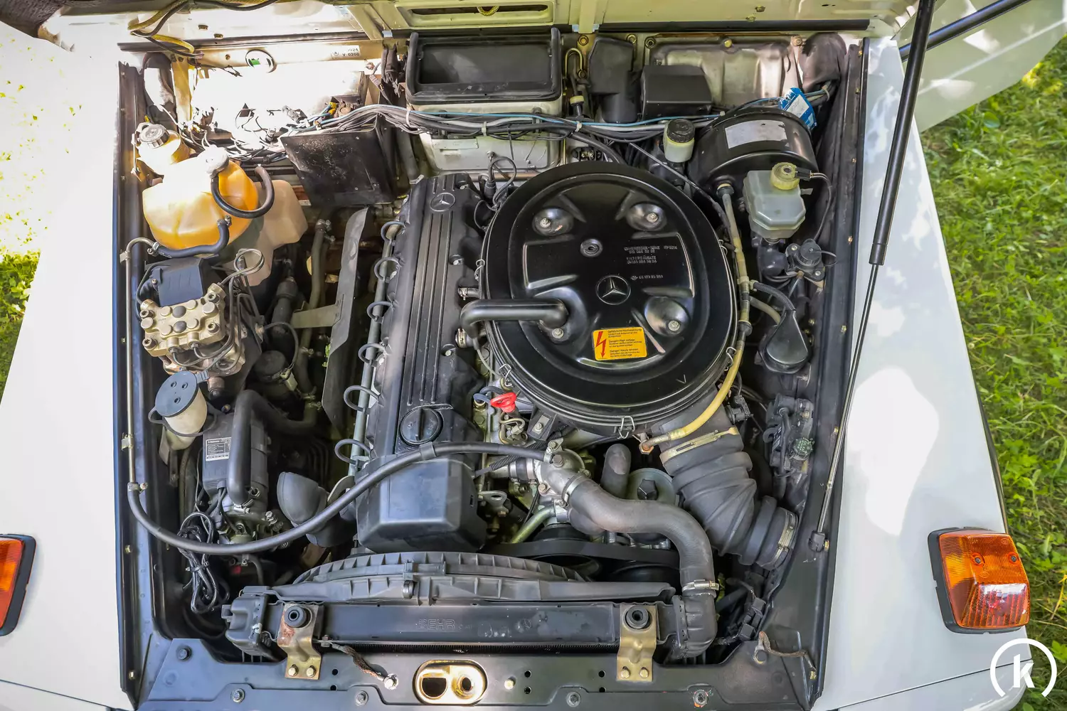 Der Motor des G 300 GE ist ein Reihensechszylinder Benziner von Mercedes mit 2960 ccm und 125 kW bzw. 170 PS. Dazu kommt ein 5-Gang Schaltgetriebe mit Untersetzung und drei Differentialen, die die Geländefähigkeit des permanenten Allradantriebs unterstützen. Reparaturen mussten laut Verkäufer bisher keine durchgeführt werden und stehen auch nicht an. Den Service hat die Feuerwehr, laut Angaben des Verkäufers, aktuell gehalten. Auch der Unterboden ist mängelfrei angegeben. Alles in allem steht dieser Puch/Mercedes G 300GE sehr gut dar. Neuer Lack, gut gepflegter Innenraum, wenig Kilometer und umfangreiche Historie machen ihn zu einem exzellenten Youngtimer.