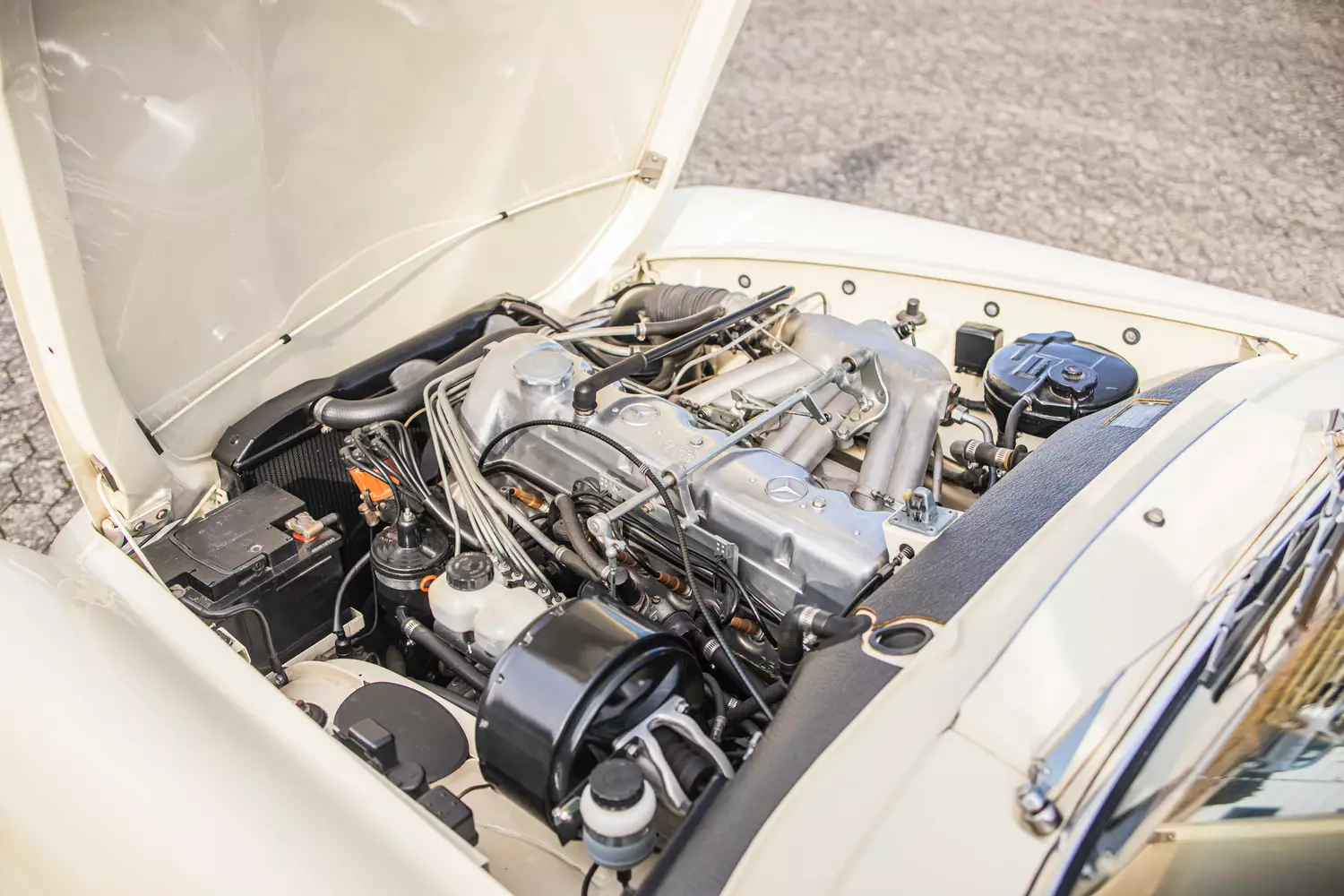 Nach den beiden Extremen 300 SL und 190 SL bekam die Roadster-Tradition der Untertürkheimer im Jahre 1963 eine neue Akzentsetzung. Der W 113 genannte Mercedes-Benz wurde erstmals auf dem Genfer Autosalon vorgestellt, konzipiert war er als eleganter Zweitwagen für eine betuchte Klientel. Eine zeitlos-sportliche Formgebung, eine ausgereifte Verdeckkonstruktion, perfekt sitzendes Hardtop und stramme Motorisierungen kennzeichneten die sogenannte „Pagode“. Insgesamt entstehen mit den Modellen 230 SL, 250 SL und 280 SL in den Jahren 1963 bis 1971 knapp 50.000 Exemplare des W 113. Den Beinamen Pagode erhielt dieser Mercedes-Benz übrigens wegen seiner hochgezogenen Außenkanten des Hardtops.