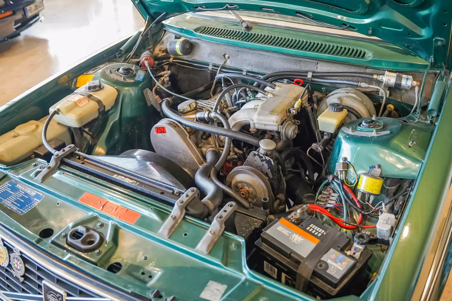 117 PS leistet der 2,0-Liter große Reihenvierzylindermotor des Volvo 244 GLE, angetrieben werden die Hinterräder über ein 4-Gang Handschaltgetriebe mit zuschaltbaren Overdrive zur Herabsetzung der Motordrehzahl. 2017 wurde der Schaltkontakt für den Overdrive erneuert, der Zahnriemen ausgewechselt und die Zündung eingestellt. 2019 fand eine Einstellung des Motors statt und das Lenkgetriebe kam neu. 2021 wurden folgende Teile erneuert: Kraftstoffspeicher, elektrische Benzinpumpe, Kraftstofffilter. Ein frischer Service wird laut Verkäuferangaben vor der Übergabe an den neuen Besitzer noch erledigt, damit dieser entspannt die Straße unter die Räder nehmen kann.