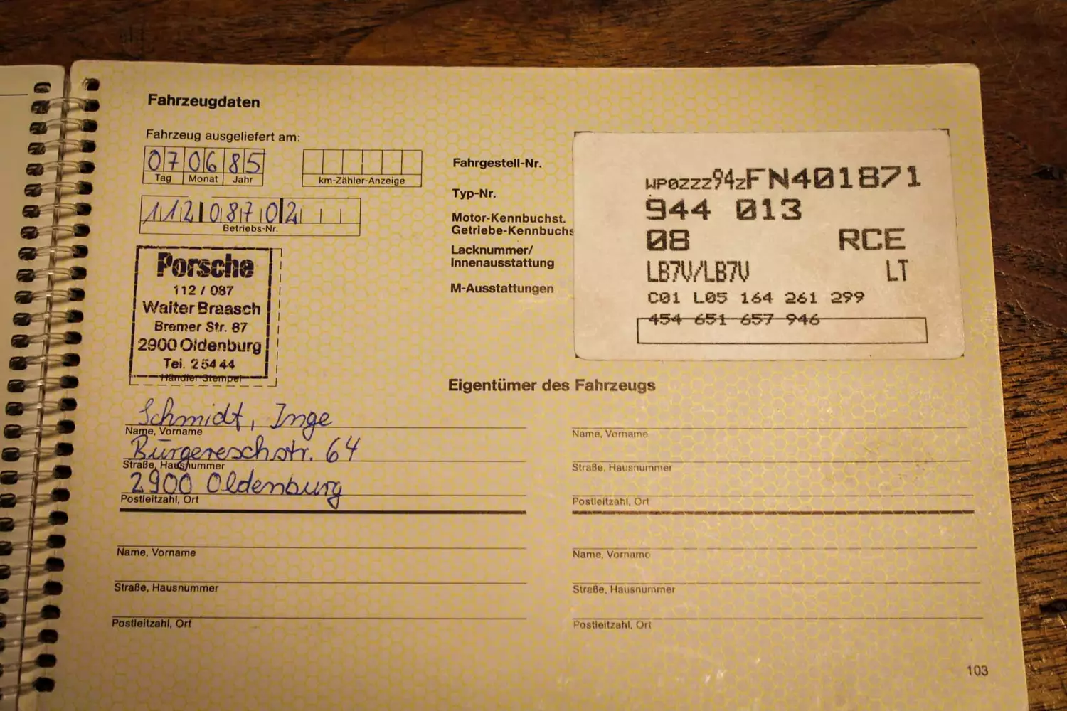 Der Porsche 944 wurde auf der Basis des Porsche 924 entwickelt und im Jahr 1982 am Markt eingeführt. Im Gegensatz zum Porsche 924 hatte der 944 einen von Porsche selbst entwickelten Motor. Im Falle des Porsche 944 S – der das Porsche – Portfolio ab August 1986 ergänzte - kam sogar ein für die Zeit hochmoderner 2,5 Liter, 16 – Ventil - Motor zum Einsatz. Bereits zwei Jahre später wurde dieser Motor durch einen 3 Liter großen Vierzylindermotor mit Vierventiltechnik ersetzt. Als das markanteste Technikdetail des Porsche 944 stellt sich die sogenannte „Transaxle-Bauweise dar. Hierbei befindet sich der Motor mit seinem Schwerpunkt leicht hinter der Vorderachse, das Getriebe zur besseren Gewichtsverteilung an der angetriebenen Hinterachse. Auf Wunsch konnte der Porsche 944 – wie auch der hier angebotene 944 S – mit einem Hubdach geordert werden. Dieses konnte nach Hinten aufgestellt oder auch komplett herausgenommen und im Kofferraum verstaut werden. Gebaut wurden Porsche 924 und 944 als Auftragsarbeit bei Audi. Insgesamt wurden etwas mehr als 176.000 Exemplare des Porsche 944 produziert, darunter 12.831 Porsche 944 S.