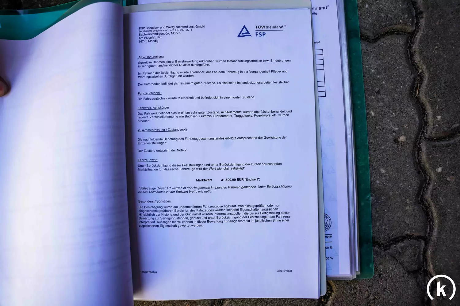 In der jüngeren Vergangenheit wurde der Zustand des Fahrzeuges regelmäßig begutachtet und auf Mängel oder Verschleißerscheinungen sofort reagiert. Zusätzlich erfolgte eine aufwendige Überarbeitung einzelner Komponenten, so dass sich das Auto in einem sehr guten Erhaltungszustand befindet und weitere Reparaturen momentan nicht notwendig sind.