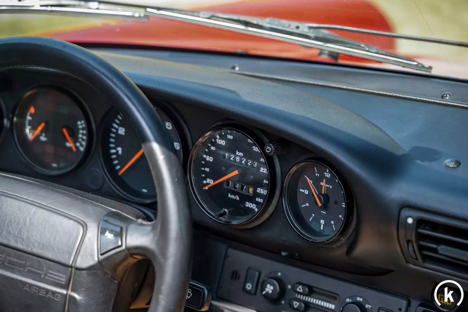 Eine Umrüstung der Tachoanzeige auf EU-Spezifikation wurde bereits erledigt, der Meilentachostand von 126.220 wurde dabei nicht verändert: Deshalb sind es nun umgerechnet 203.140 Kilometer, begleitet durch ein teilweise geführtes Scheckheft, welcher dieses 911 Cabriolet seit seiner Auslieferung bis heute zurückgelegt hat. Des Weiteren liegt ein CarFax vor. Alle Anzeigen im Kombiinstrument sind in tadelloser Verfassung vorzufinden.