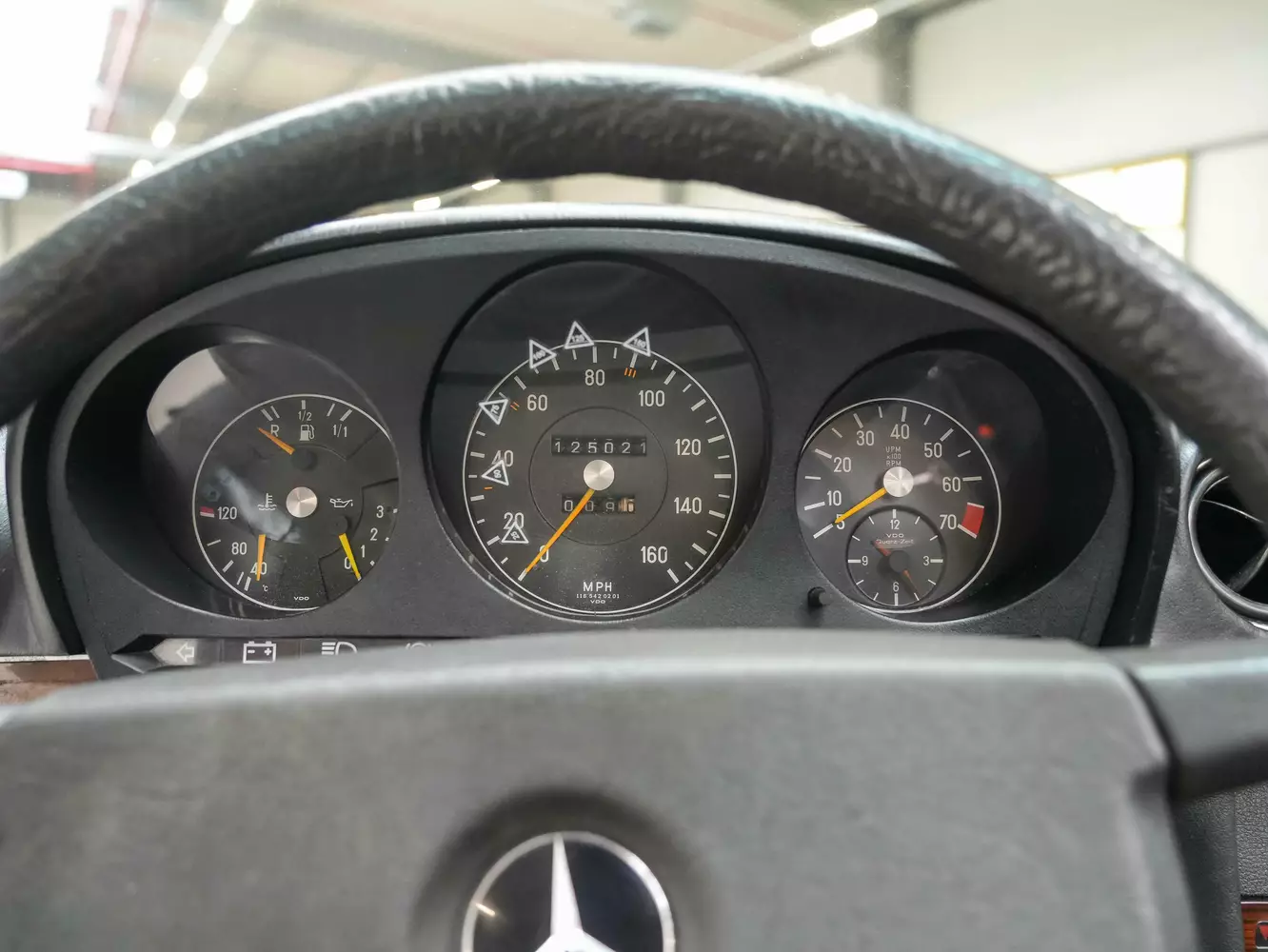Zur Zulassung in den USA wurde der Geschwindigkeitsmesser auf eine Ausführung mit Meilenanzeige umgerüstet, anhand der angebrachten Markierungen lässt sich die Geschwindigkeit jedoch auch in km/h ablesen. Am fünfstelligen Tachometer lässt sich eine Laufleistung von 125021 Meilen ablesen, was in etwa 200.000km entspricht. Die Laufleistung des Wagens lässt sich durch fehlende Scheckhefteinträge und die nicht vorhandene Historie nicht belegen. Die Instrumente funktionieren den Angaben nach ohne Einschränkungen.