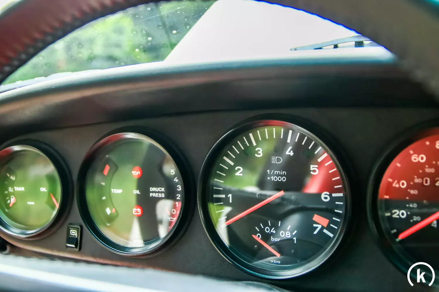 Behind the steering wheel, the instrument panel is presented in classic 911 style, including round instruments with a centrally mounted rev counter. As a US model, the speed is displayed in miles per hour, but the additional display also shows it in km/h. The six-digit speedometer has a total mileage of 27285 miles, which corresponds to almost 44000km. The mileage is traceable via the history and enclosed documents. According to the information, the instruments work without restrictions.