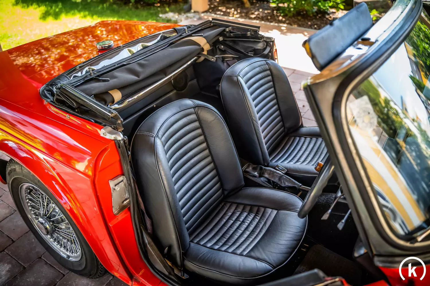 A look at the underbody of the Triumph TR6 reveals a healthy and well-preserved condition. A roadster like a TR6 is small, hard, openly pure and offers high entertainment value – its problem-free handling and the in-line six-cylinder engine also make it interesting. Red on the outside and black on the inside: This literally screams for sportiness – this Triumph TR6 offered here convinces with its honest overall condition. As a right-hand drive variant, this TR6 also conveys the typical British charm.