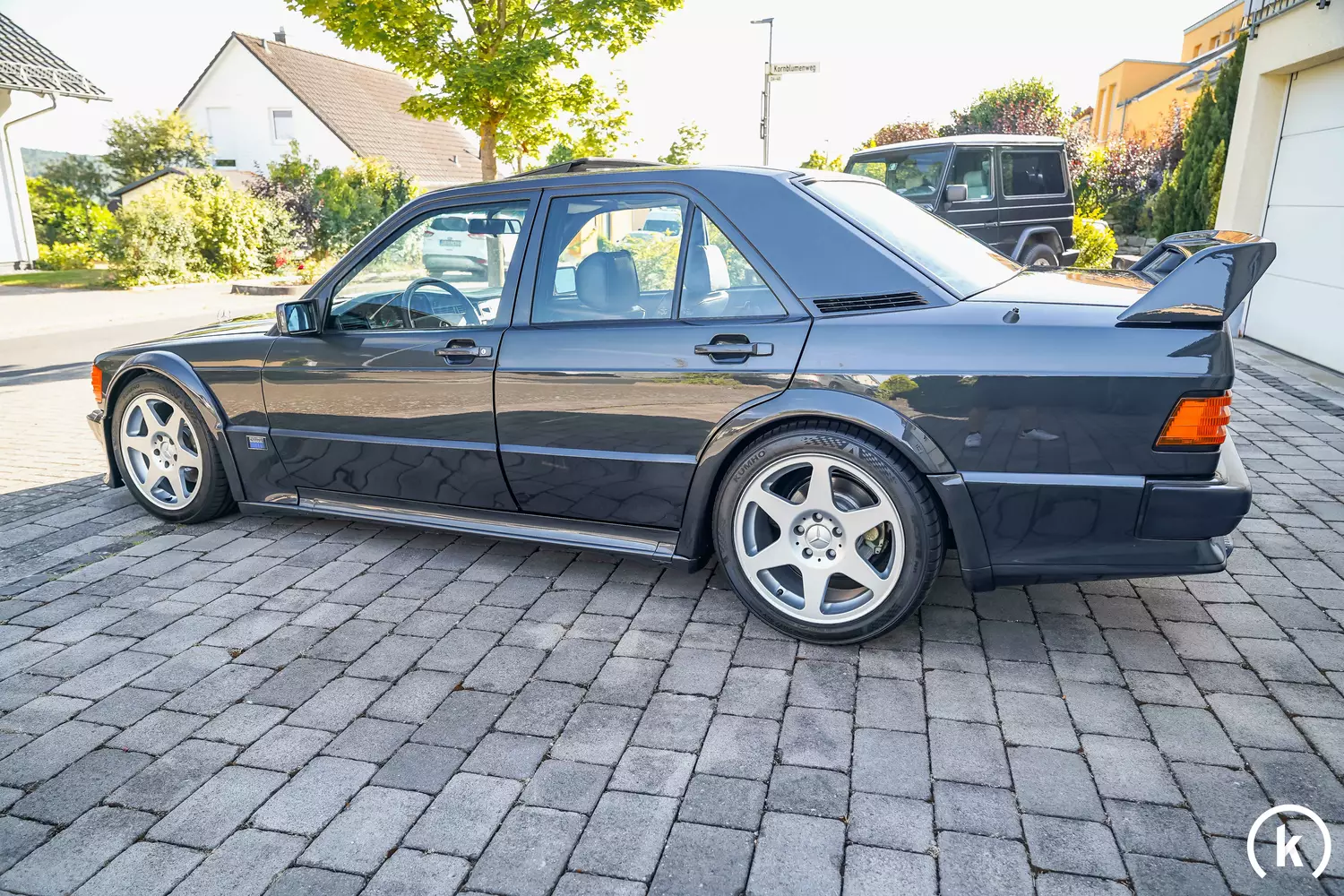The short-stroke 2.5-litre in-line four-cylinder naturally aspirated engine of the 2.5-16 Evolution delivers 204 hp, while the power of the 4 cylinders is transmitted to the rear wheels via a 5-speed sports transmission – in which the 1st gear is located on the left rear. According to the seller, a conversion of the rear axle differential from 3:27 to 3:67 was carried out, which ensures that the Mercedes-Benz drives more agile in the lower rev range. The original differential will be included with the purchase. Due to the omission of the kars and the exhaust pipe from 2.5-16, the car has 204 instead of 195 hp. In April 2019, a last service was completed, since 1999 the 2.5-16 Evolution was registered according to the current owner only in the summer and was therefore only driven in sunshine.