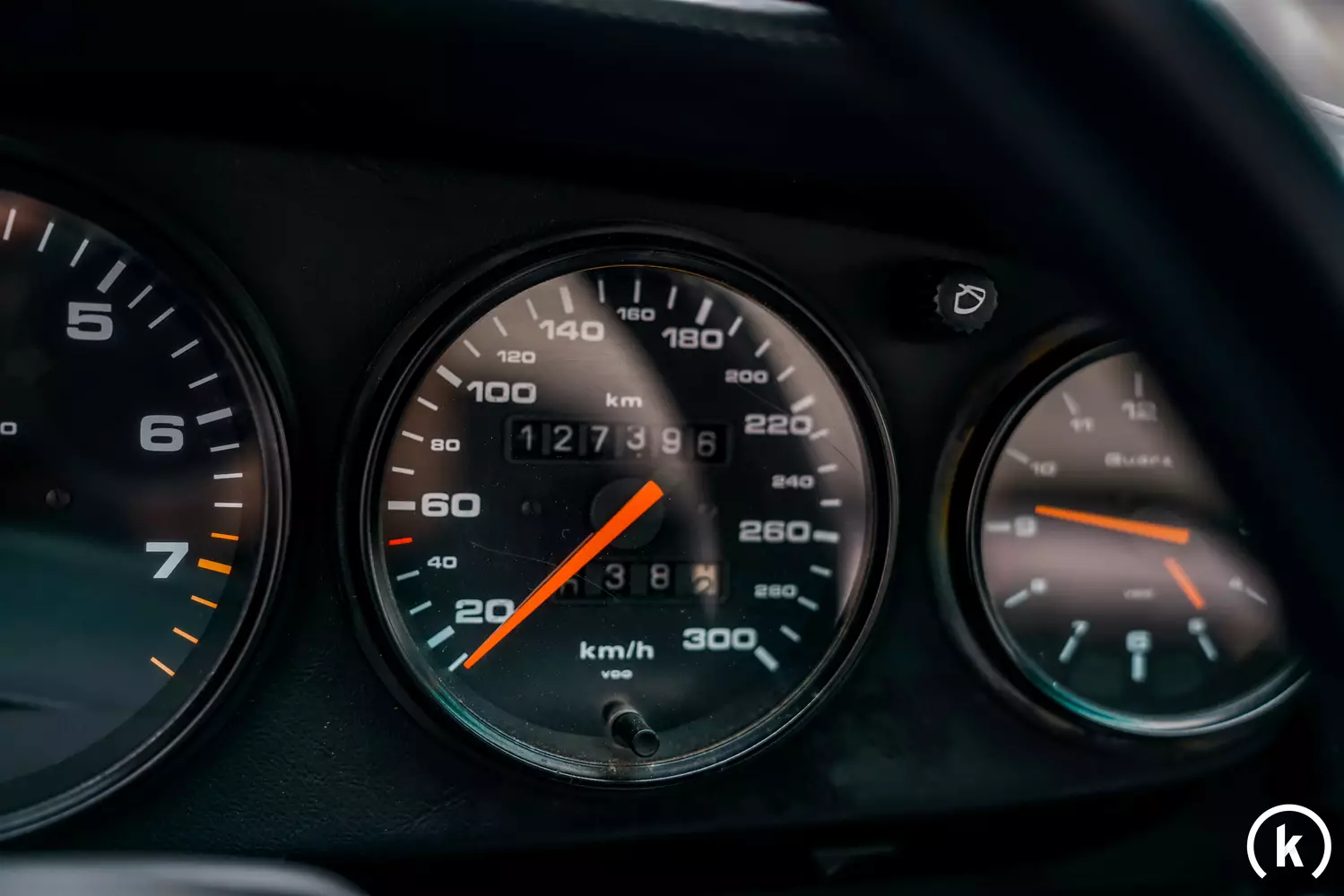 There are 127,400 kilometres on the speedometer of this Porsche 964 Cabriolet: the function of all instruments in the interior is given and the mileage of the sports car can be proven by a partially kept Porsche checkbook and a wide variety of documents.