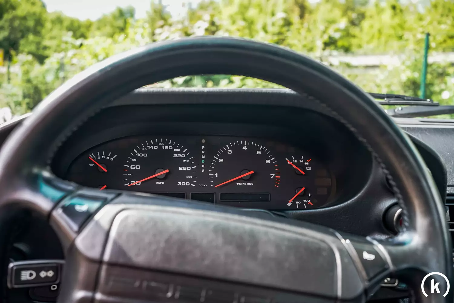 According to the mileage, there is some patina in the interior of this 928 GTS – but damage or missing parts in the interior of the Porsche cannot be identified. Seats, door panels, footwell carpet, dashboard, headliner, steering wheel and automatic selector lever are preserved in good condition and indicate the care of the previous owners. In addition to power steering and power windows, the 928 GTS is also equipped with air conditioning, ABS, electric seat adjustment, heated seats and an accessory radio with CD player and USB connection.