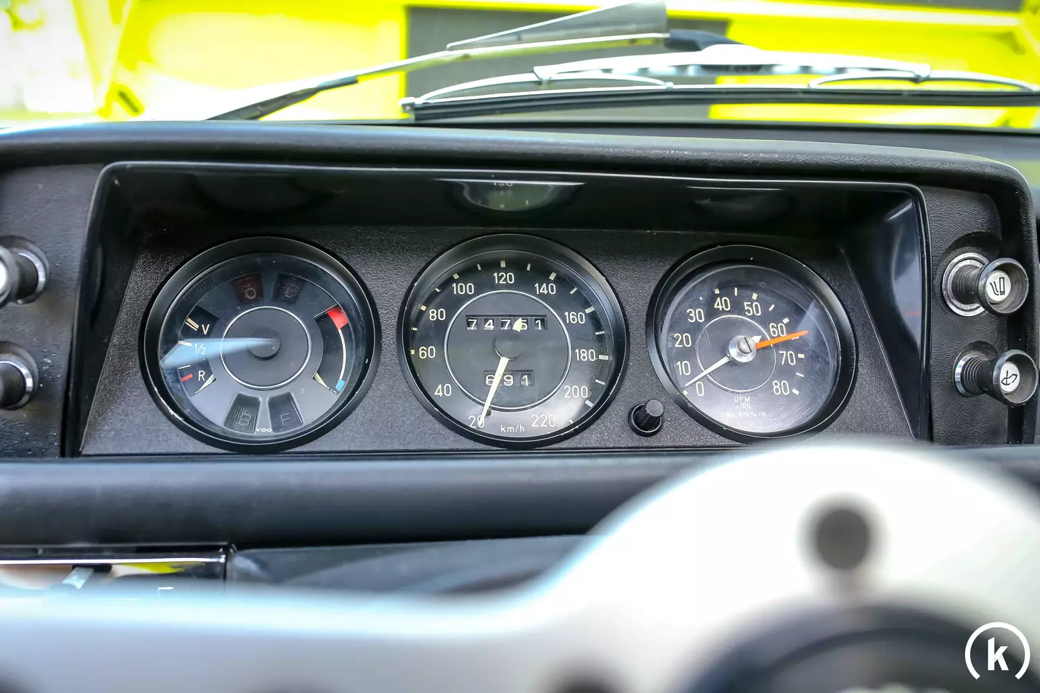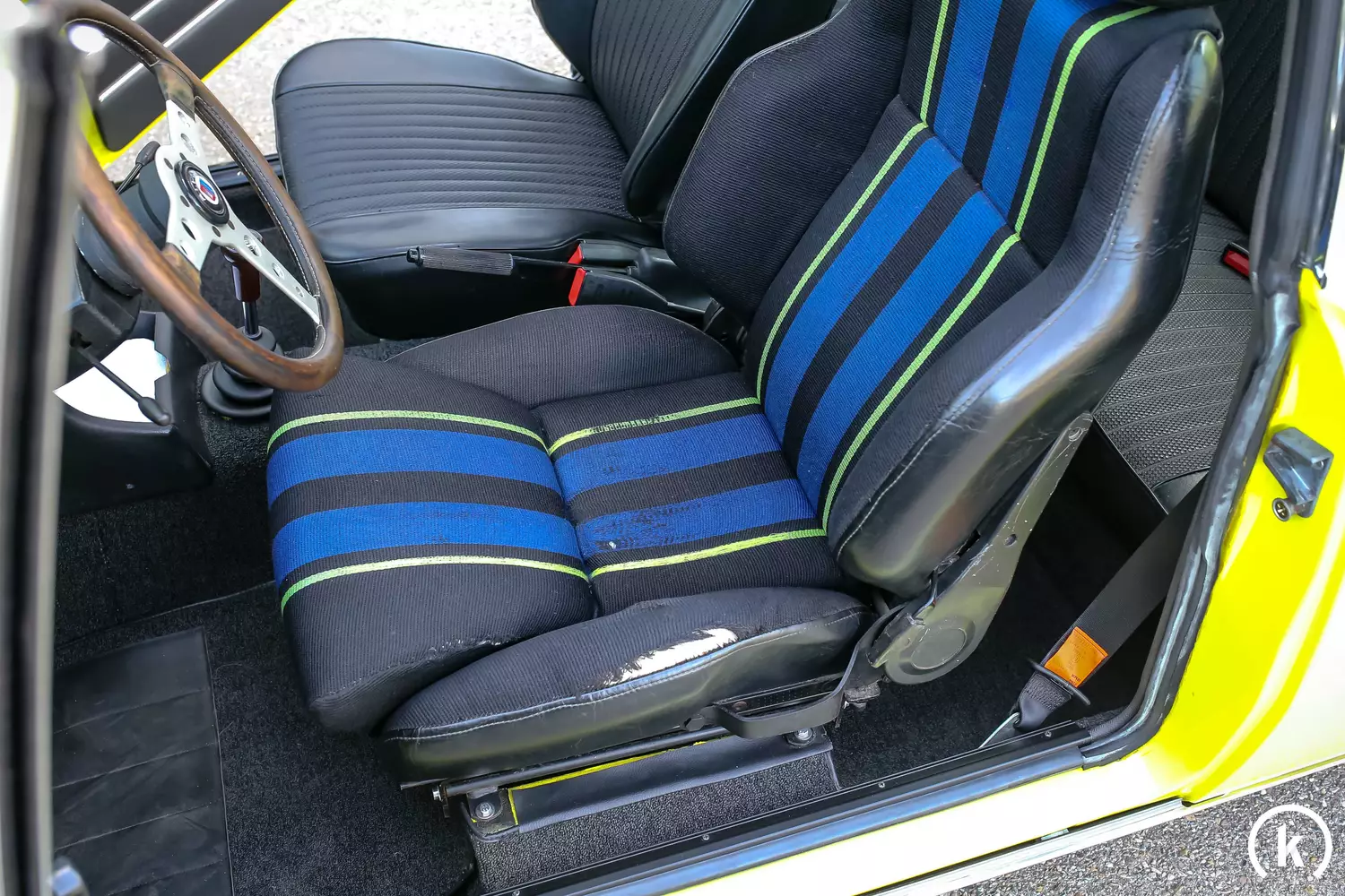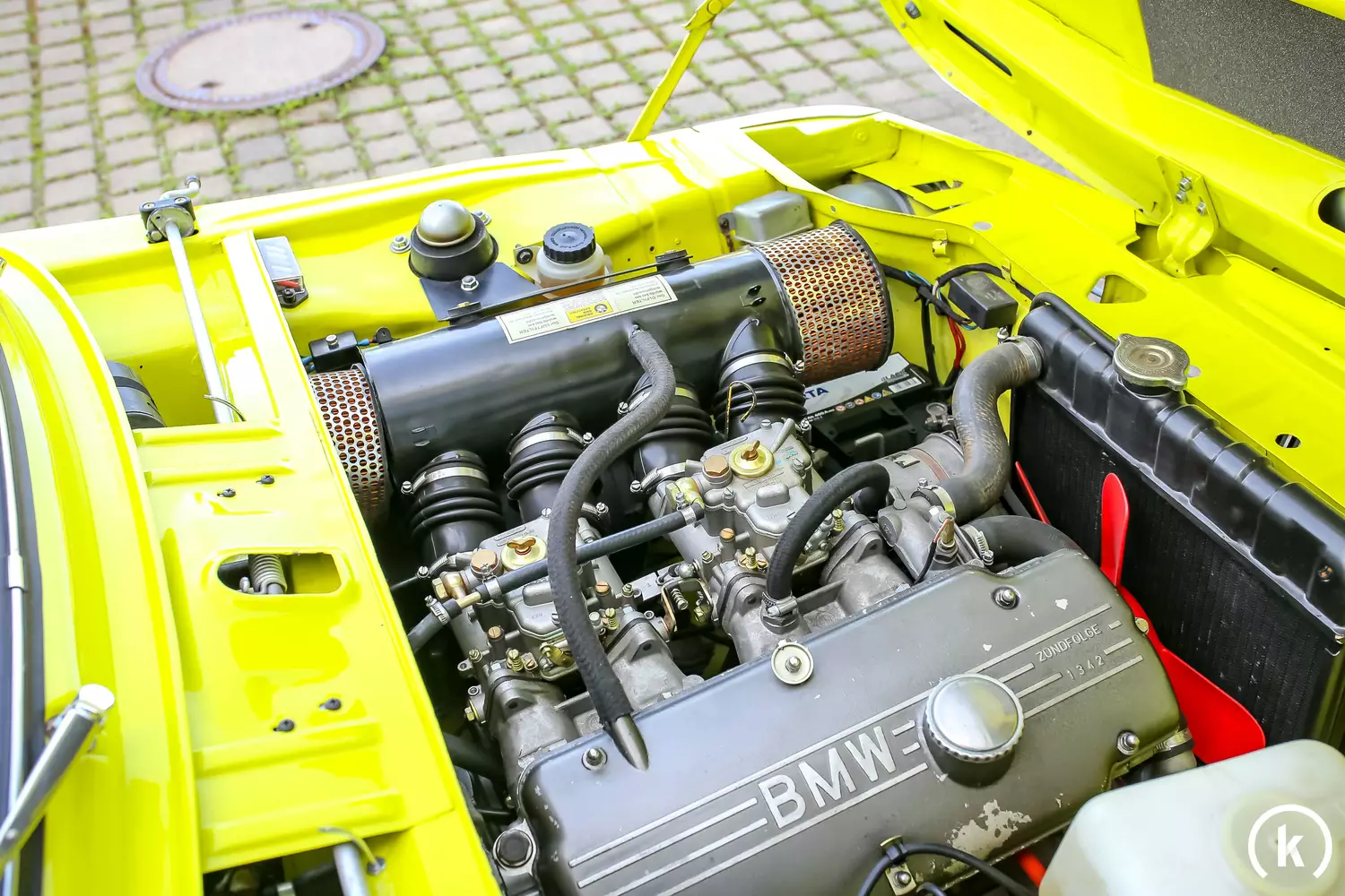 Externally, the BMW is classic with the well-known silhouette of the 02 series: The yellow paint tone exudes pure 70s flair and shows itself without defects. In the course of the complete restoration, the entire body shell of the BMW was revised so that this 2002 Ti is prepared for the next decades. The chrome as well as all attachments are completely preserved and present themselves in a decent condition without damage, corrosion on the exterior can not be found anywhere even rudimentarily. The current owner rules out an accident, and the chrome bumpers at the front and rear do not show any parking bumps, which would tarnish the very good overall impression of the BMW 2002 Ti.