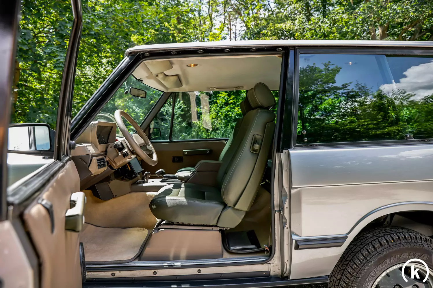Given the overall mileage of this Range Rover, the underbody is in extremely good condition – a recent underbody seal protects the underbody from rust. The style and line of a classic Range Rover simply fit anytime and anywhere – comfort, space, V8 engine and the dignified handling are on the credit side of this vehicle. The fact that the Range Rover Classic offered here is a two-door makes it rarer than the four-door nowadays – in combination with the automatic transmission and the air conditioning, high demands on everyday suitability can also be met.