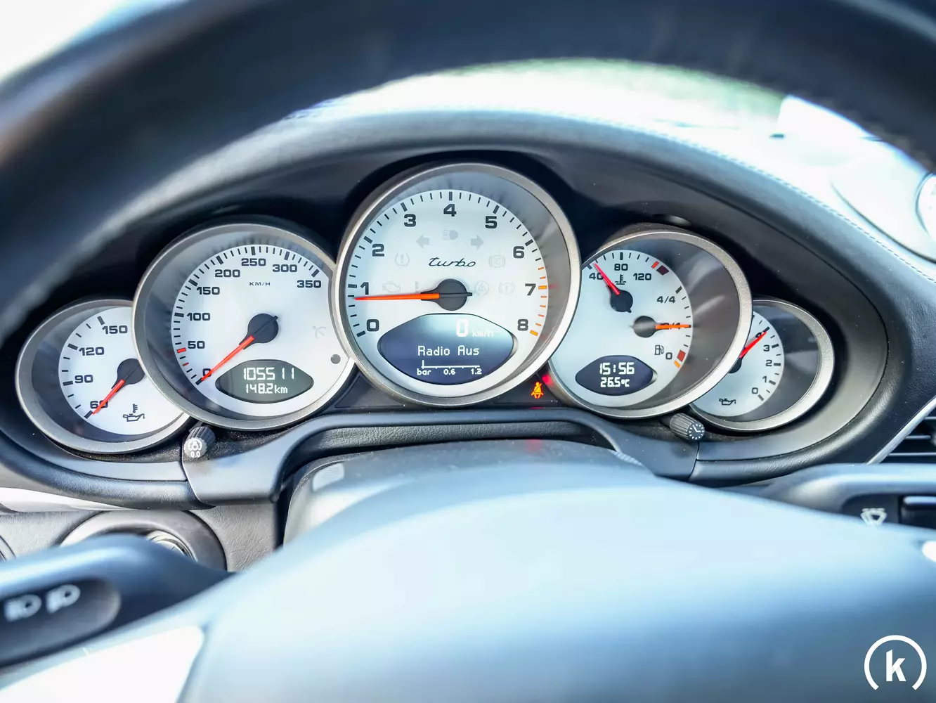 The cockpit with the 5 round instruments known for 911 drivers can read a mileage of 105,000 kilometers on the display speedometer. A constantly guided and thus complete Porsche checkbook is available and confirms this mileage. All instruments in the interior must be certified to function flawlessly.