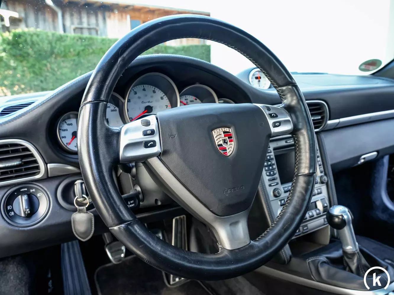 The 3.6-litre six-cylinder boxer engine delivers 480 hp and is shifted via 6-speed manual transmission. The power is evenly distributed to all 4 wheels, so traction is always given. In November 2021, the last service work took place, pending repairs or current defects are not available, according to the seller.
