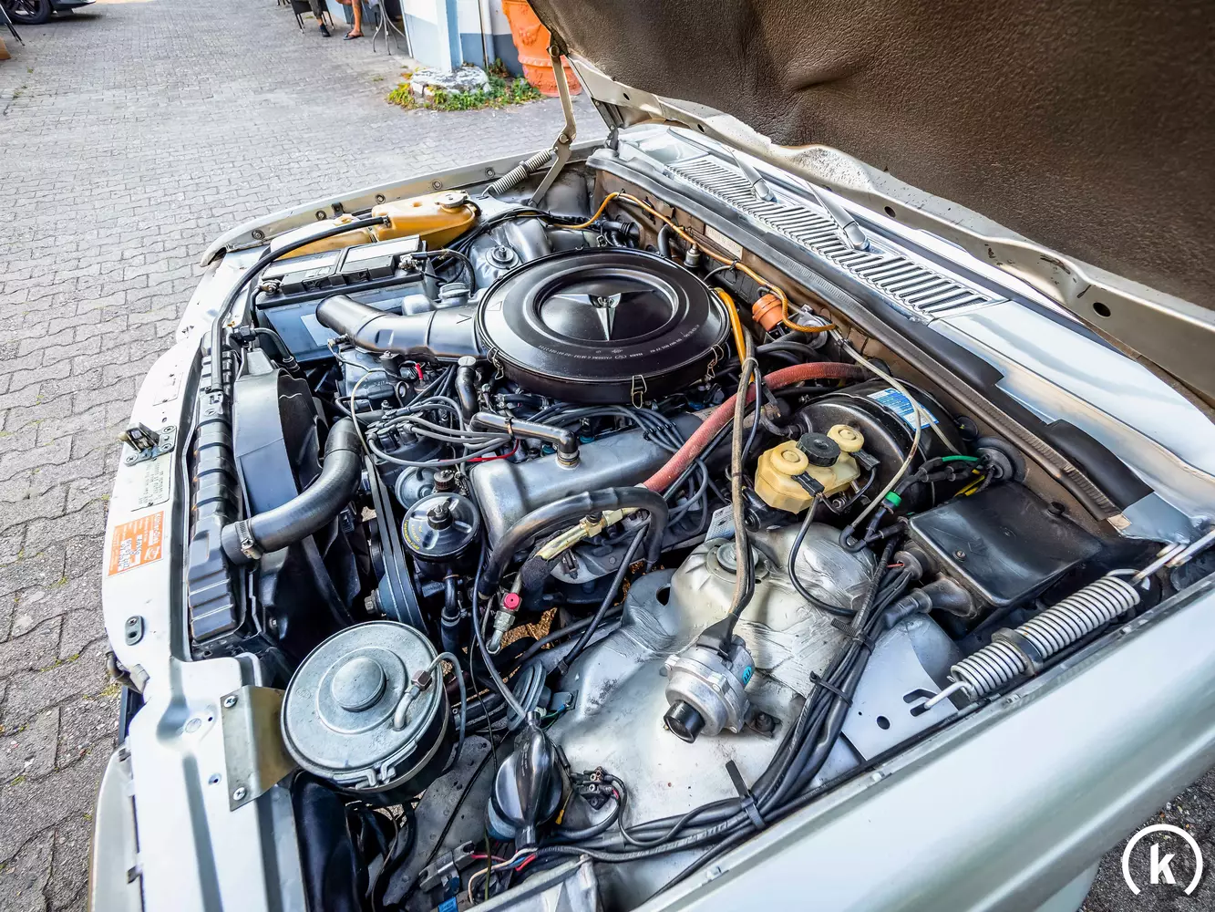 The V8 engine with 4.5-liter displacement provides an output of 225 hp, via a 3-speed automatic transmission, the power is passed on to the rear wheels. The seller states that currently about 5,000 € is invested in the technology and a last service has been completed in December 2021. Recently, the current owner was on holiday with this 450 SEL – on the 4,300-kilometer journey, the sedan did not cause any problems.