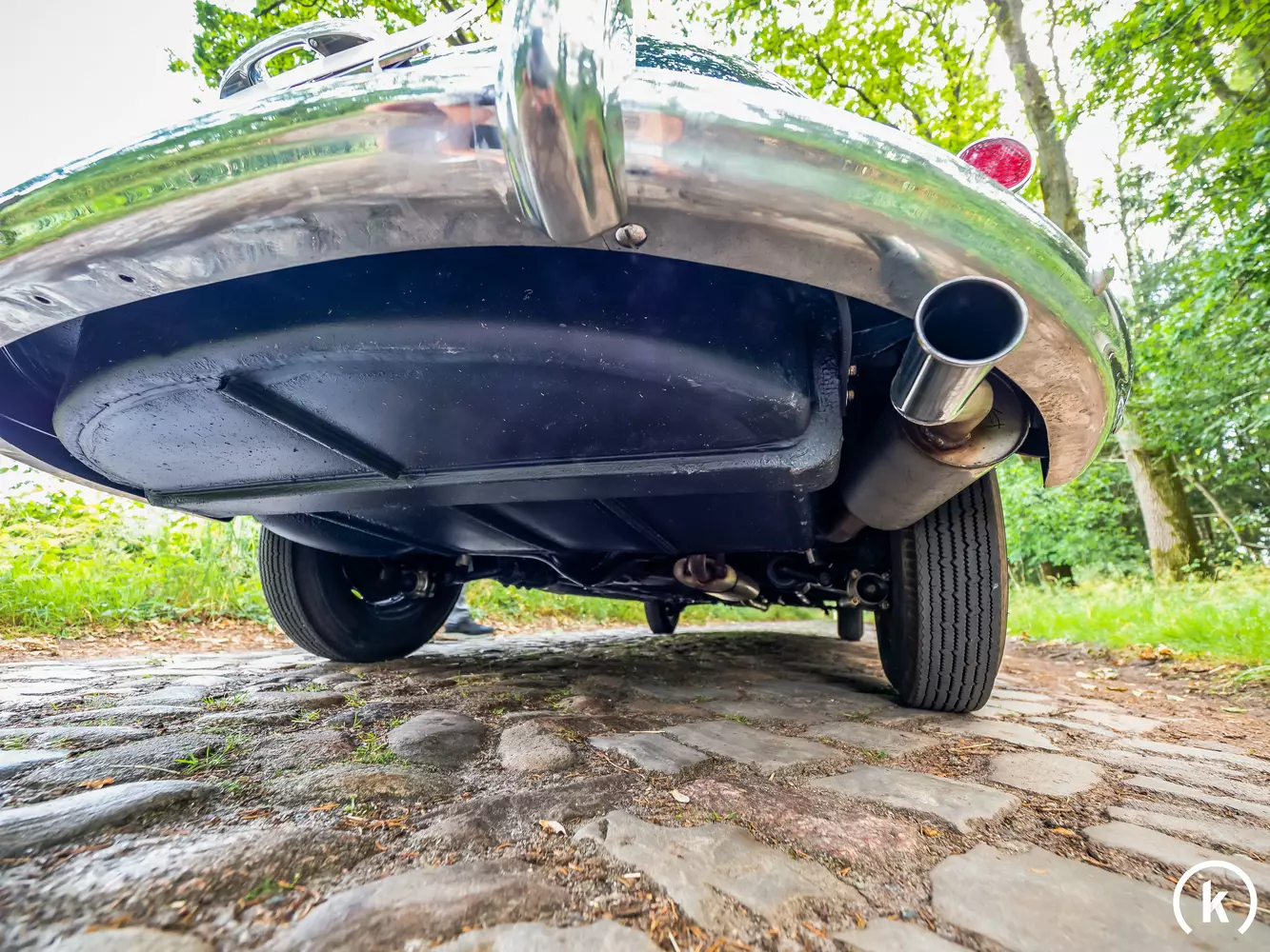 The tires can apparently be attributed a good condition with sufficient tread, in the area of the rims – which are kept in body color and have chrome covers – no damage is present. No deficits can be detected in the brake system as well as in the area of the chassis.