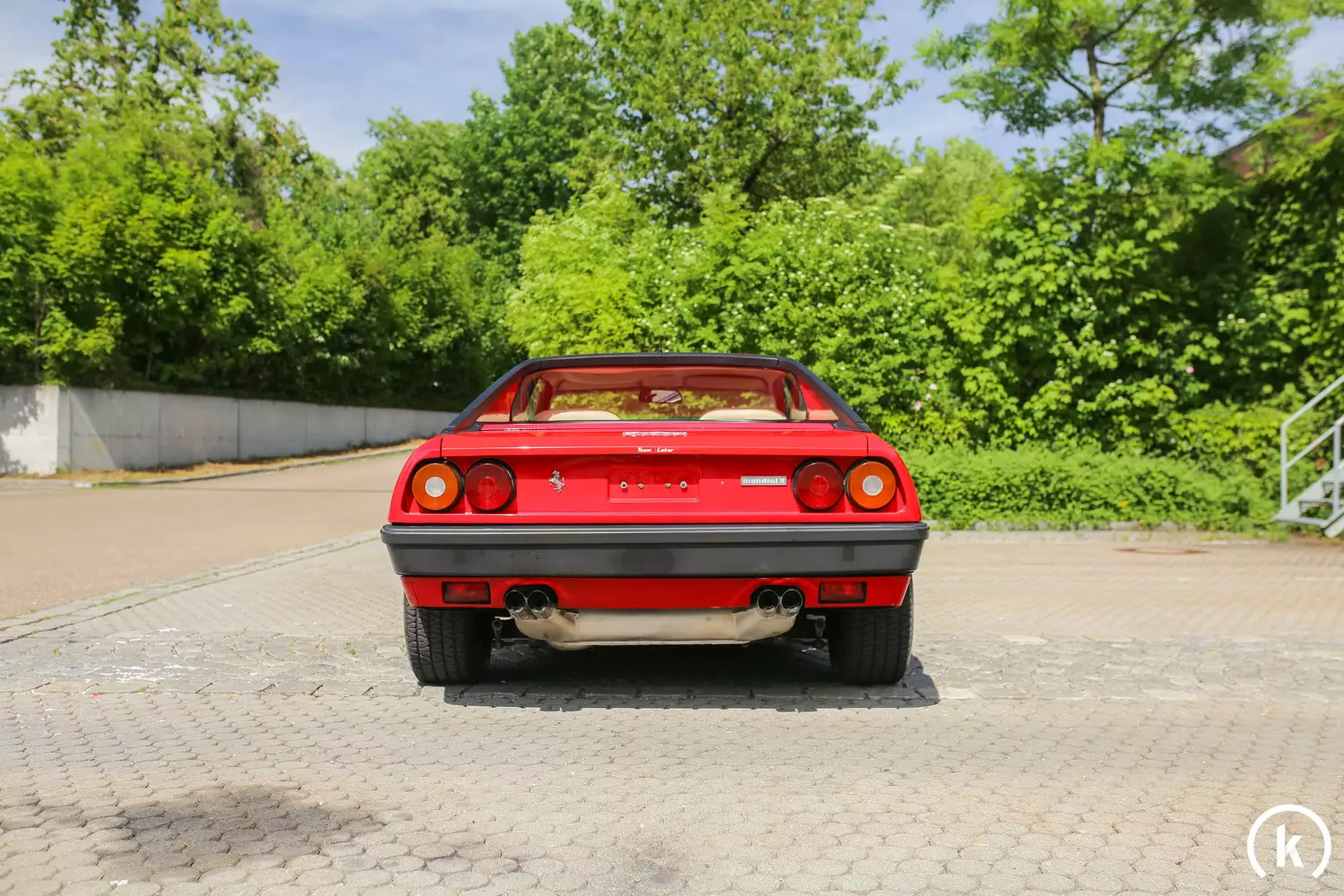 The body of the Ferrari Mondial is kept in classic "Rosso Corso": It is worth mentioning partial repainting on the exterior of the car, according to the current owner, the vehicle did not suffer an accident. Except for stone chips at the front of the car, the traces of use on the exterior are generally limited. All plastic elements on the Ferrari impress with their undamaged and thus well-preserved condition, also front and rear bumper convince by a very good state of preservation. Modifications deviating from the original condition are not to be listed on the exterior of this Italian sports car.