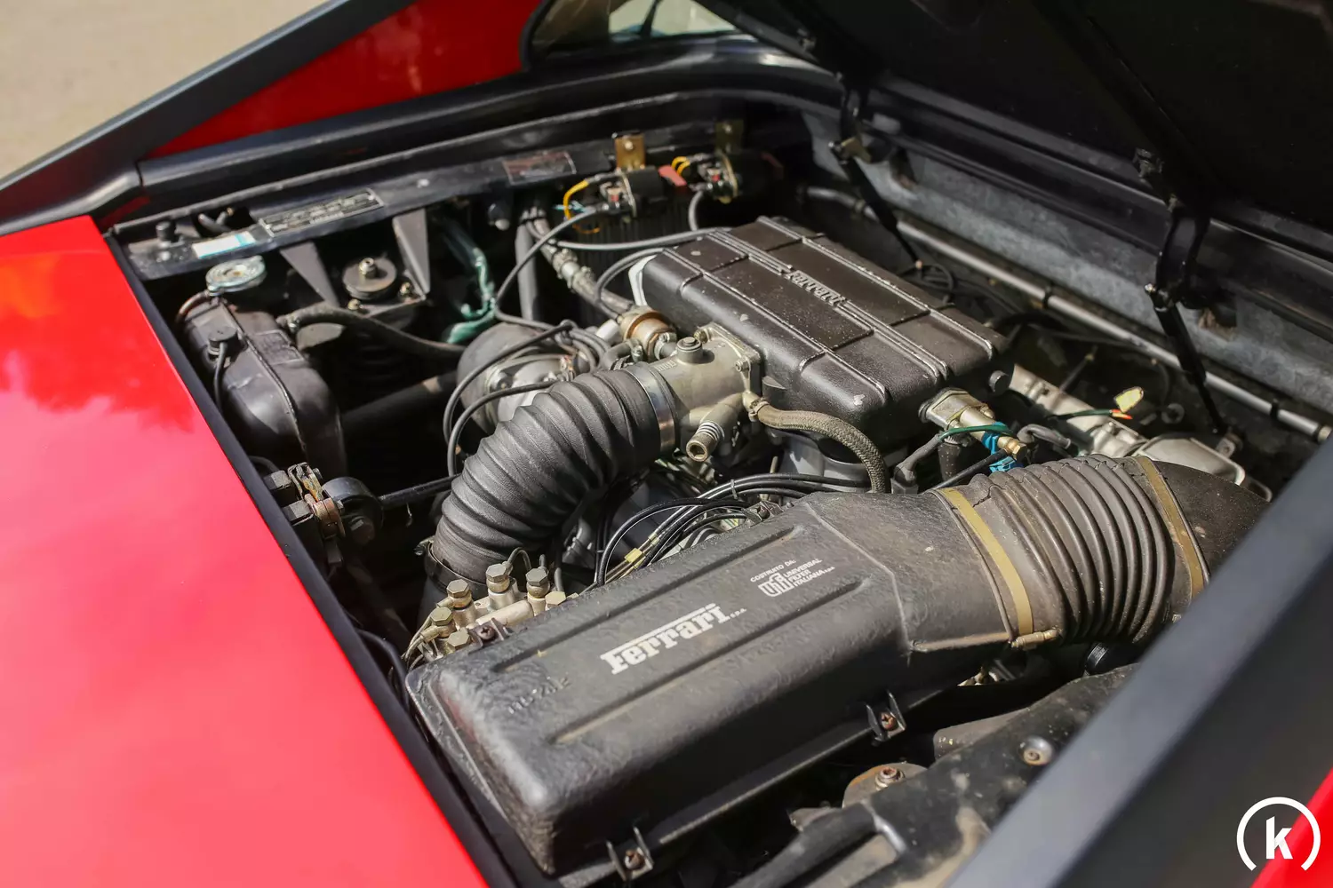 Installed transversely to the direction of travel is the V8 mid-engine of the Mondial, which generates 214 hp from 3.0 liters. The individual gears are engaged via a 5-speed manual transmission – with an open gearshift backdrop typical of Ferrari. Recently, a maintenance with timing belt change took place, defects in the technology are not recorded according to the seller information.