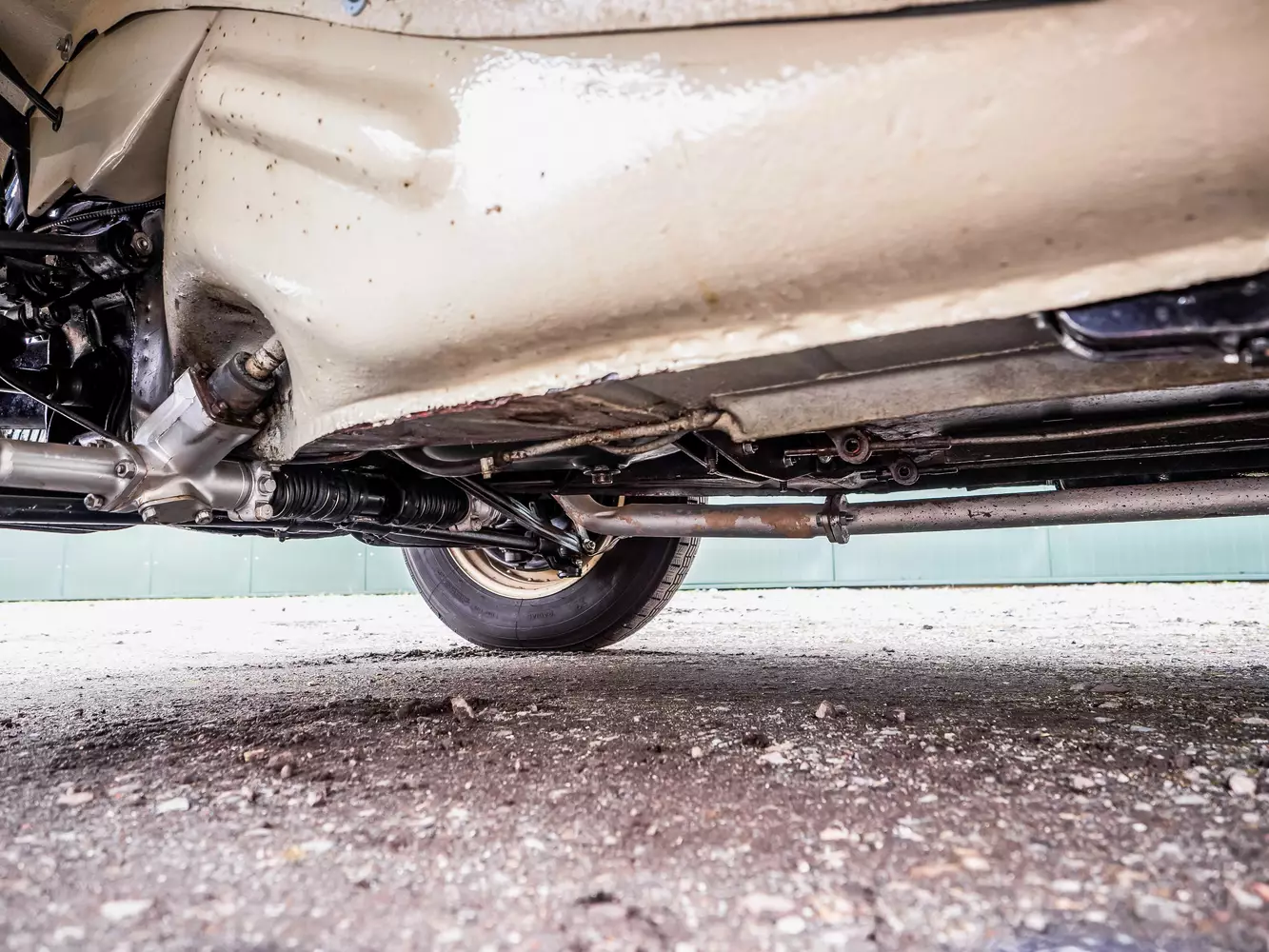 New Michelin tyres with an all-round 7mm tread are located on the CV11, the beige steel rims with the chrome hubcaps are in good condition. The brakes are also in good shape, no modifications can be taken from the chassis – because here too has been extensively restored.