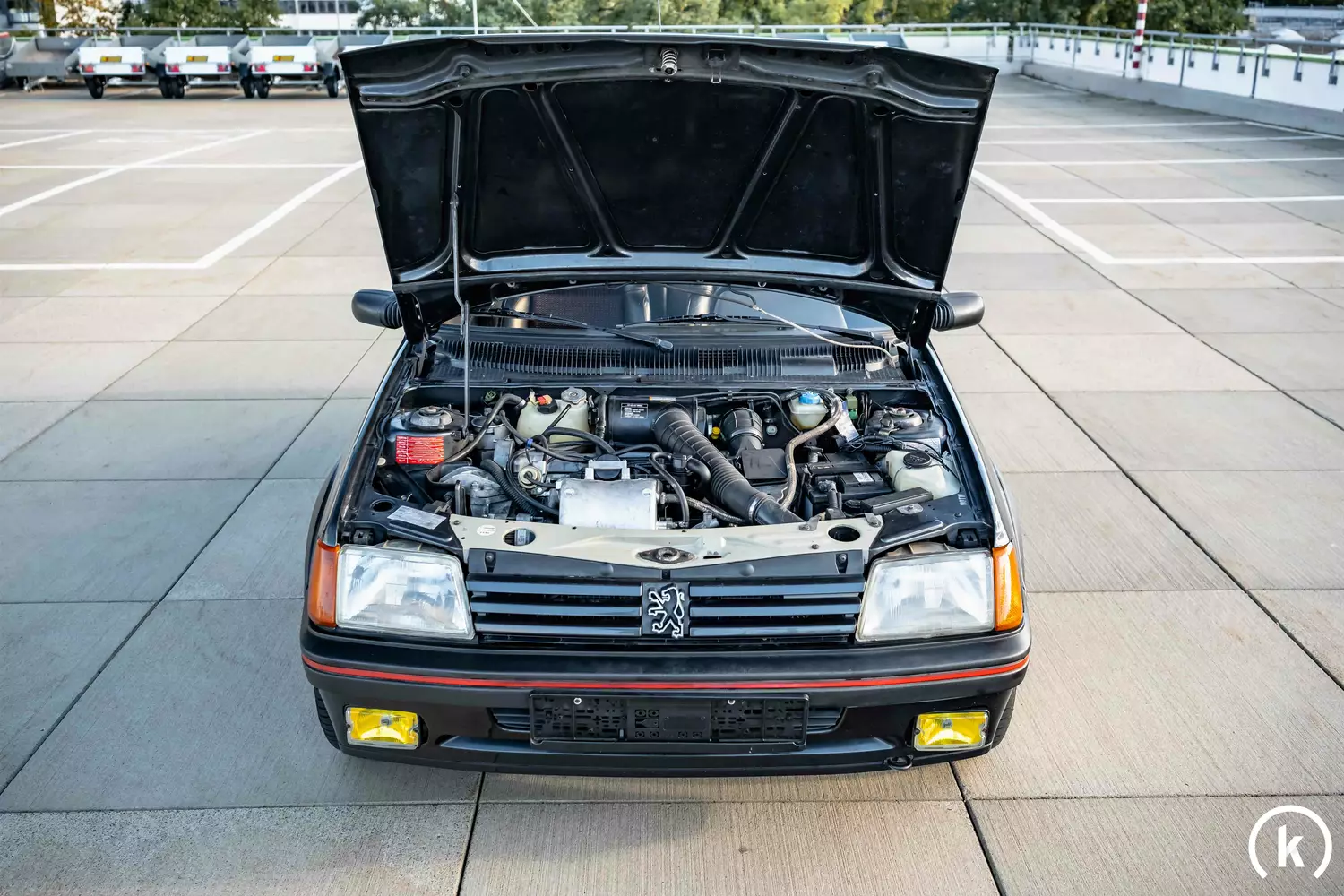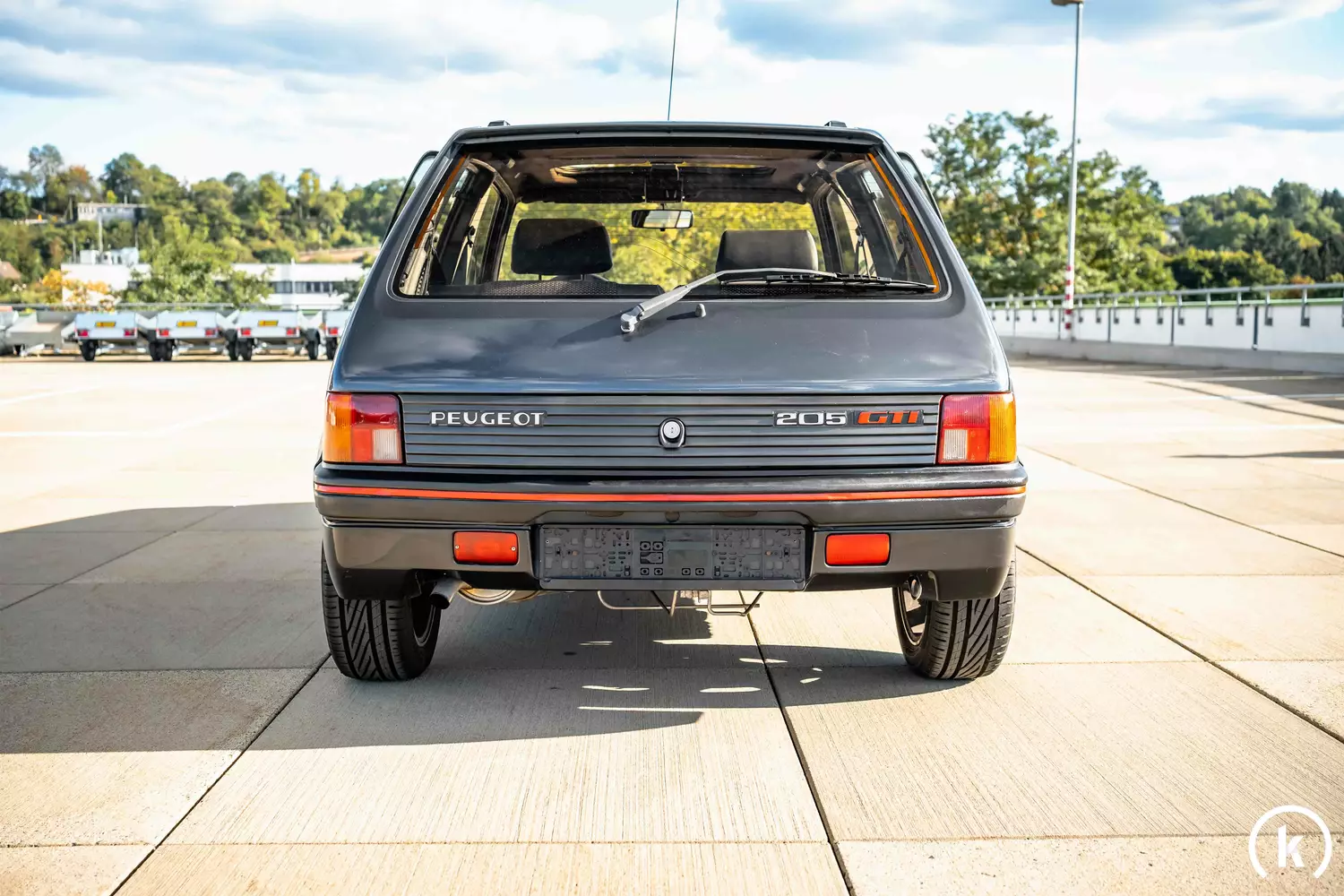 After consultation with the current owner, he states that only the roof and the bonnet were repainted due to clearcoat defects, but the GTI otherwise still has its black first paint. Subsequently, the entire car was prepared by a professional, so that the first paint of the Peugeot shines again. All plastic attachments on the 205 are preserved in very good condition, rust on the body can not be detected. In addition, the seller states that the Peugeot is accident-free and has no modifications deviating from the original condition.