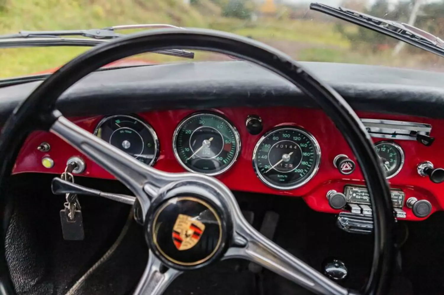 The 356 has been repainted in the original colour signal red. According to the holder, the outer skin has no optical defects. External modifications are therefore also not present. The vehicle stands on the original rims with original wheel trims. The condition of the tires is rated as good by the current owner, modifications are not available in this area. The brakes are also rated as good by the owner, defects are not present according to the information available to us.