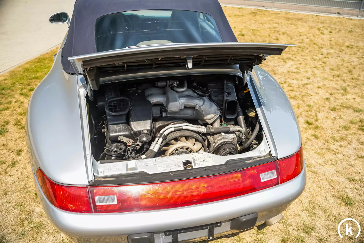 In this auction, a silver-colored Porsche 993 Carrera 2 Convertible is for sale. The vehicle was produced in Zuffenhausen in 1996 and then exported to the United States to the Porsche representative in Palo Alto. The lively sports car was first registered in July of the same year and spent most of the last 25 years in California before being brought back to Germany by a collector in 2015. In its history, the car had only three owners and has remained accident-free since its return to Europe and probably before that. The development of the sports car is easy to understand in the checkbook, but not all documents are available anymore. A reliable statement about matching numbers is therefore not possible beyond doubt, but first the Porsche 993 must be officially registered in Germany. Registration as a historic vehicle is not yet possible, but the main inspection at the TÜV must be made up. With a valid operating permit, the future owner can look forward to a car ready to drive, which is handed over in good general condition with 2 vehicle keys and numerous documents.