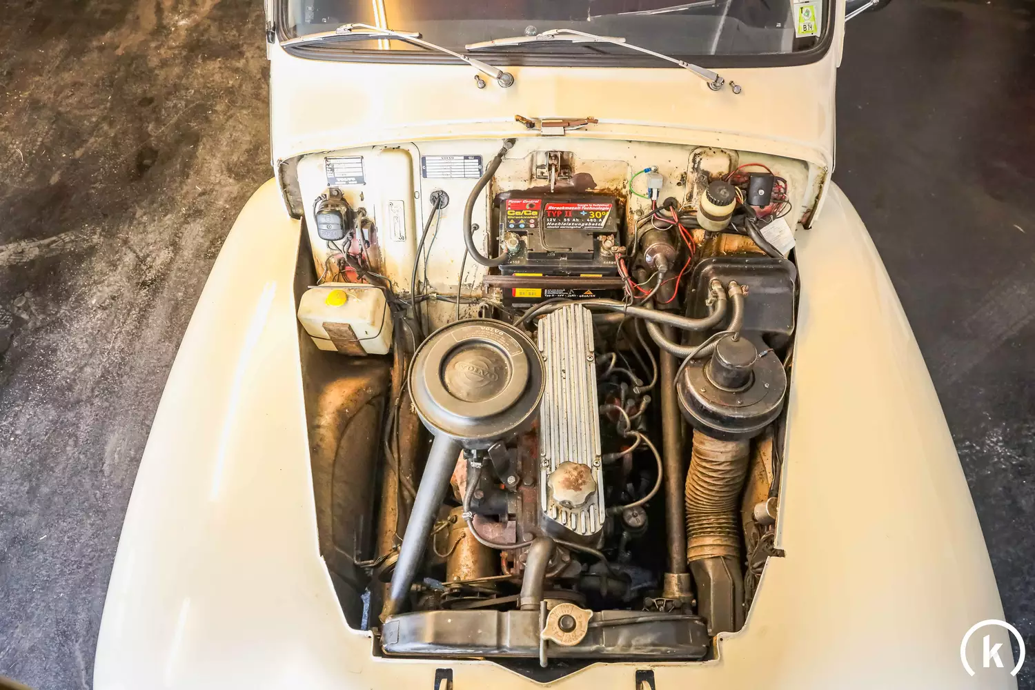 Under the bonnet that opens forward, the Volvo four-cylinder engine with a displacement of 1.8 litres and 75 hp is revealed. Via an easy-to-shift 4-speed gearbox, the individual gears can be engaged without any problems. When a last service was carried out, the seller can not say, in addition, it is not known which repairs were carried out. As a recommendation, the current owner states that the mechanical fuel pump should be replaced by an electric one.