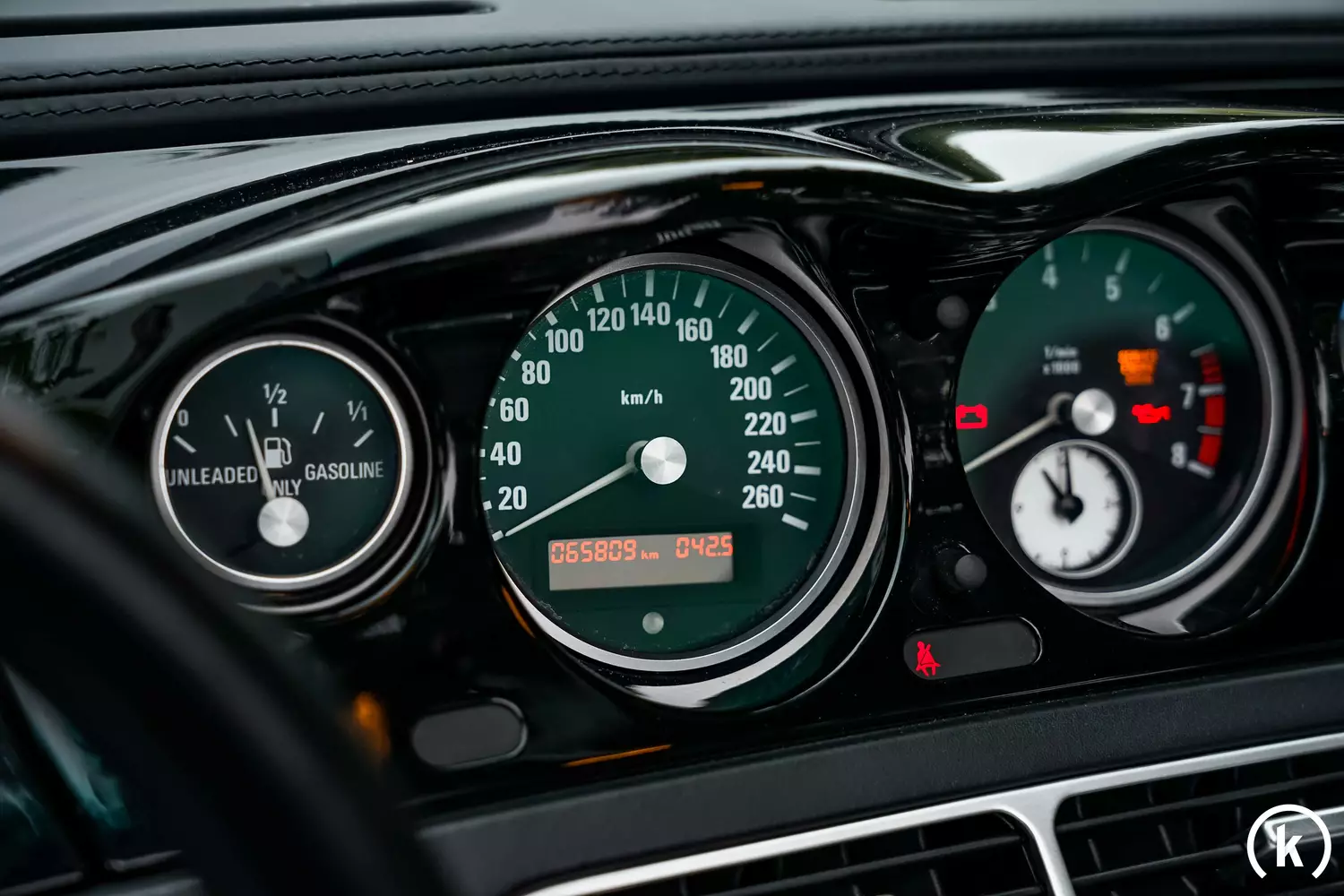 The instruments arranged in the middle of the car are puristic in style: 65,810 kilometres can be read on the display in the speed round instrument, which can be documented on the one hand by the CarFax history, on the other hand by various documents and documents. All displays and controls in the interior have a complete function.