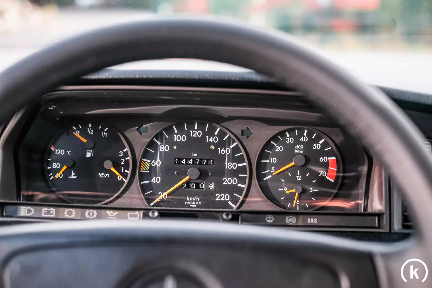 There are no cracks on the dashboard, in the speedometer unit a mileage of 144,770 kilometers can be read which can be almost traced by means of some cancelled invoices and former TÜV reports. Among the documents is the on-board folder of the W201 including a partially stamped checkbook.