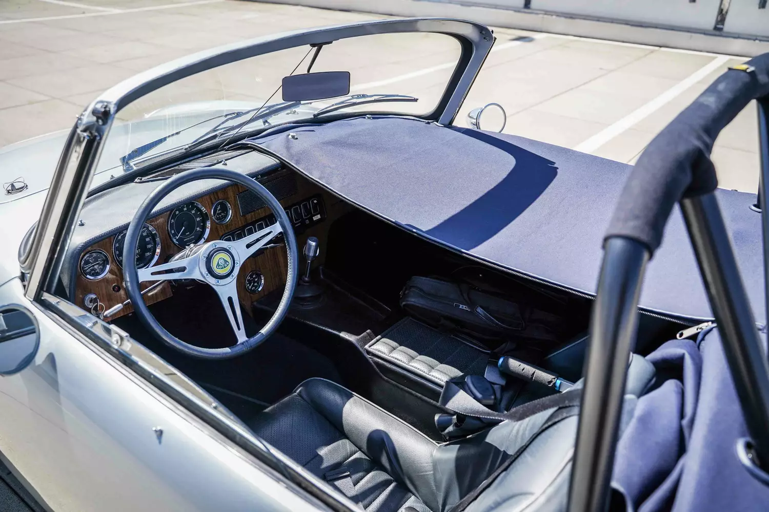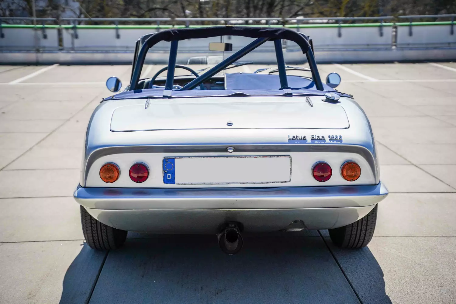 Die Herstellerfarbe des Lotus lautet Grau. Dem Roadster wurde als äußerliche Modifikation ein Überrollbügel hinzugefügt. Ansonsten entspricht optisch alles dem Original. Kein Rost oder sonstige äußere Mängel sind erkennbar.
