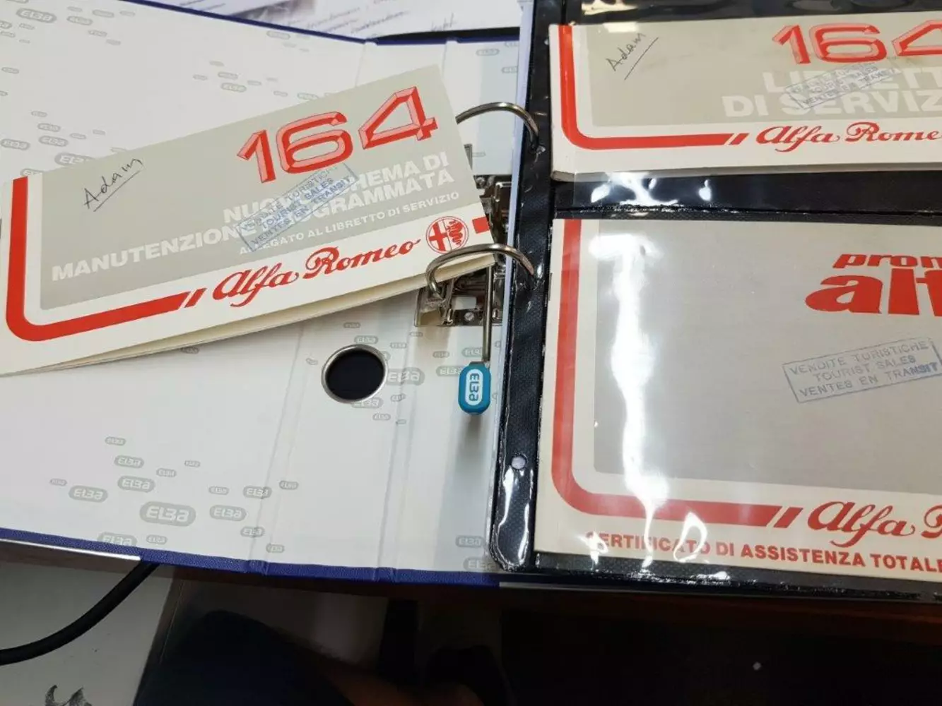 Das Serviceheft hat 3 Eintragungen, 1. bei 2360Km, 2. bei 6730Km und 3. bei 18.056Km. Des Weiteren sind sehr viele Rechnungen und div. Dokumente mit dabei. Rechnung in 2006 bei 13.780Km. Der Erstbesitzer war ein griechischer Diplomat, der seine Dienste in Rom verrichtete, ital. Dokumente mit Steuerbefreiung liegt vor. Wie ich es aus den Dokumenten rauslesen kann, hat er den Alfa 164 2005/06 mit nach Griechenland genommen, aber nie dort zugelassen. Kurz darauf ist er verstorben und der Wagen stand unter einem Carport, mit der Fahrerseite hin zur Sonnenseite, somit war der Klarlack auf der linken Seite komplett ausgetrocknet und hat sich aufgelößt (Foto liegt vor). 2018 wurde der Alfa an einen deutschen verkauft, der in Kalamata lebt. Er hat den Alfa partiell nachlackieren lassen und einen großen Service durchführen lassen mit allen Flüßigkeiten und Filtern, Zahnriemensatz mit Wasserpumpe, die Bremsanlage wurde überarbeitet, Stoßdämpfer überholt, defekte Manschetten getauscht, Stabilager getauscht, Batterie getauscht, Achsen vermessen und neue Reifen für die deutsche H-Zulassung montiert. Danach hat er den 164er für einen Tag zugelassen, damit er deutsche Papiere hat. Welche Infos benötigen Sie noch? Welche
