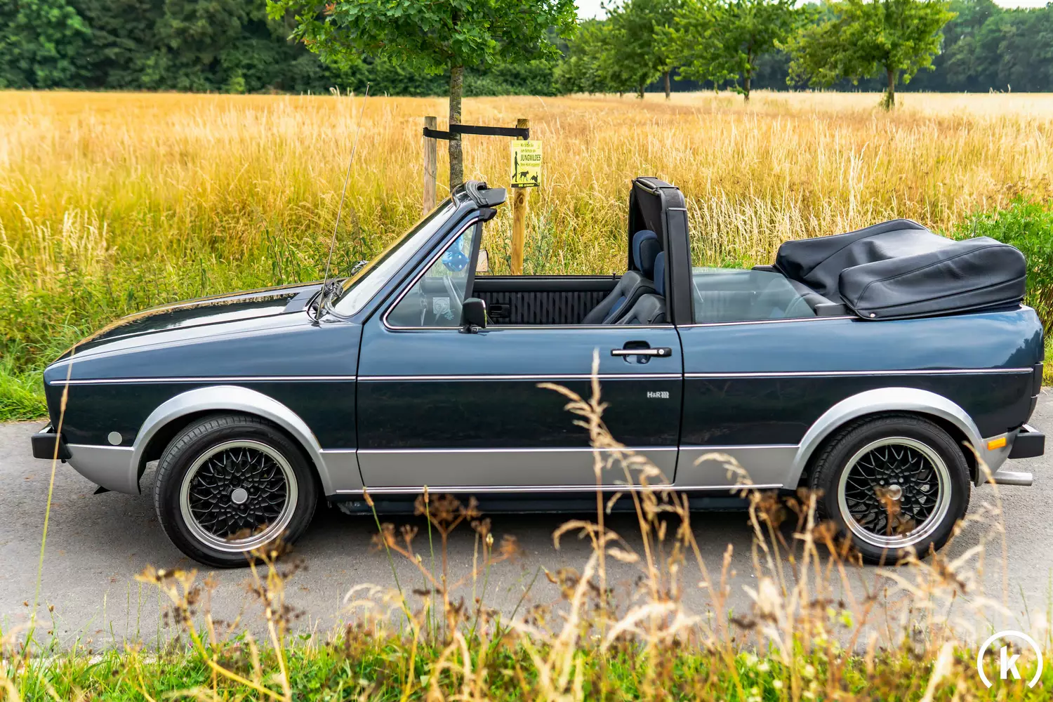 Das Cabrio ist äußerlich in sehr gutem Zustand, nichts wurde modifiziert, verbastelt oder getunt. Dem rollenden Freudenspender sind seine 37 Jahre, kaum anzusehen. Auf den Bildern haben wir die kleineren Mängel am blauen Lack aber gut dokumentiert. Von den typischen Roststellen ist der Golf größtenteils verschont geblieben. Für den besseren Überblick haben wir diese Stellen ebenfalls bestmöglich fotografiert. Das Verdeck ist 2021 erneuert worden, genauso wie die Außenspiegel, alle Fenstergummis, Chromzierleisten und die Front- & Heckstoßstange (Chrom).