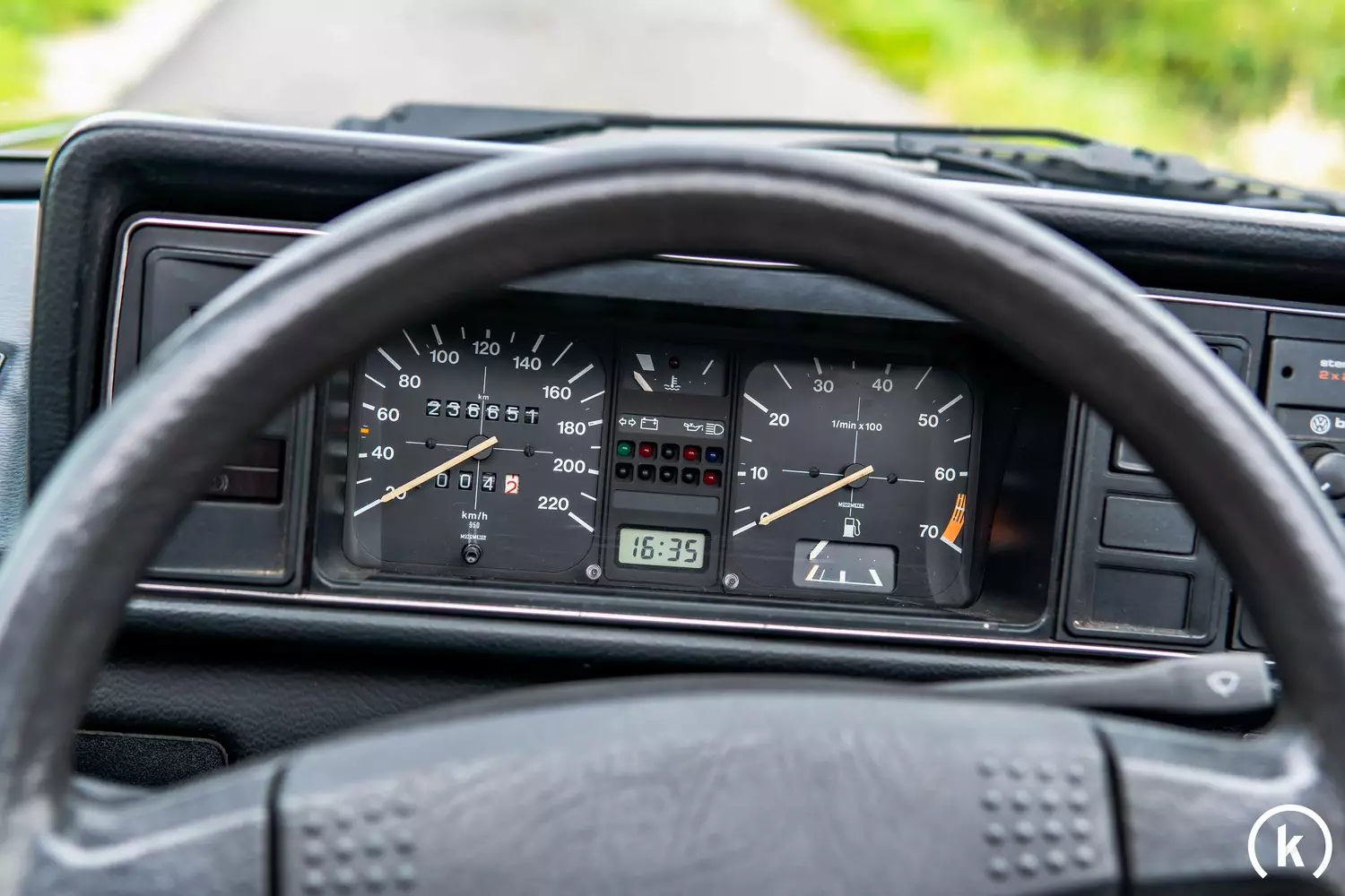 Der Tacho zeigt 236.651 km, eine stolze Zahl, doch sicher ist noch lange nicht Schluss. Die Instrumente und Anzeigen gibt der Verkäufer alle als funktionsfähig an. Selbst die Digitaluhr gibt uns, ohne Pixelfehler, die Uhrzeit an. Die vollständige Historie ist zwar nicht vorhanden, aber die Rechnungen für die Restauration und ein sehr guter Allgemeinzustand sprechen für viele weitere Jahre Freude mit diesem Cabrio.