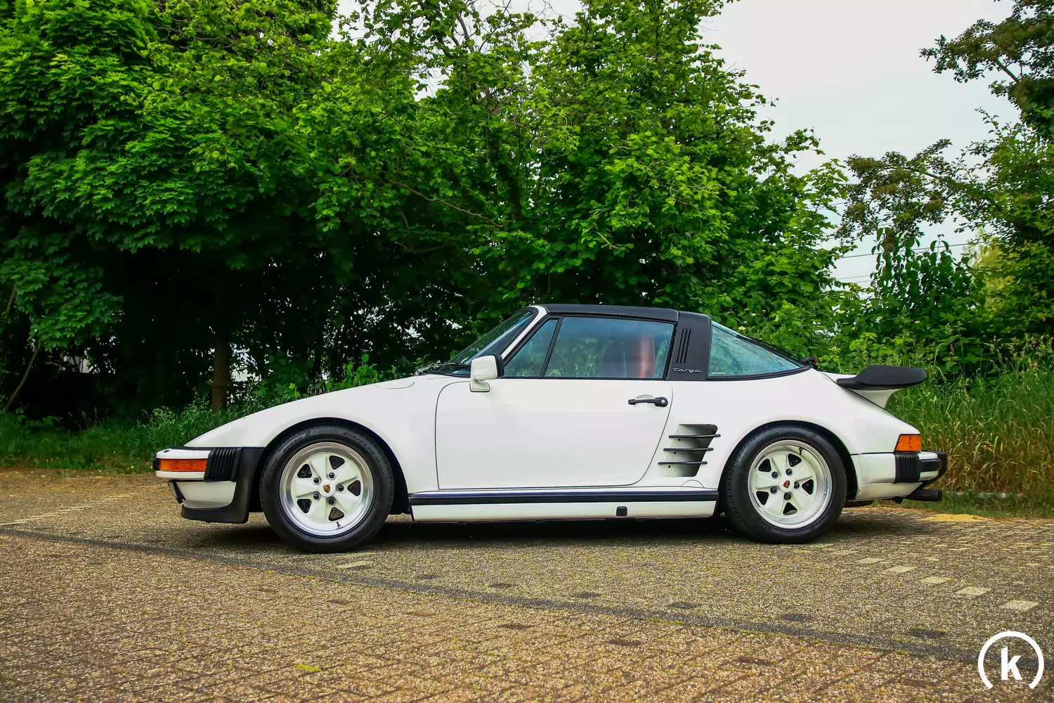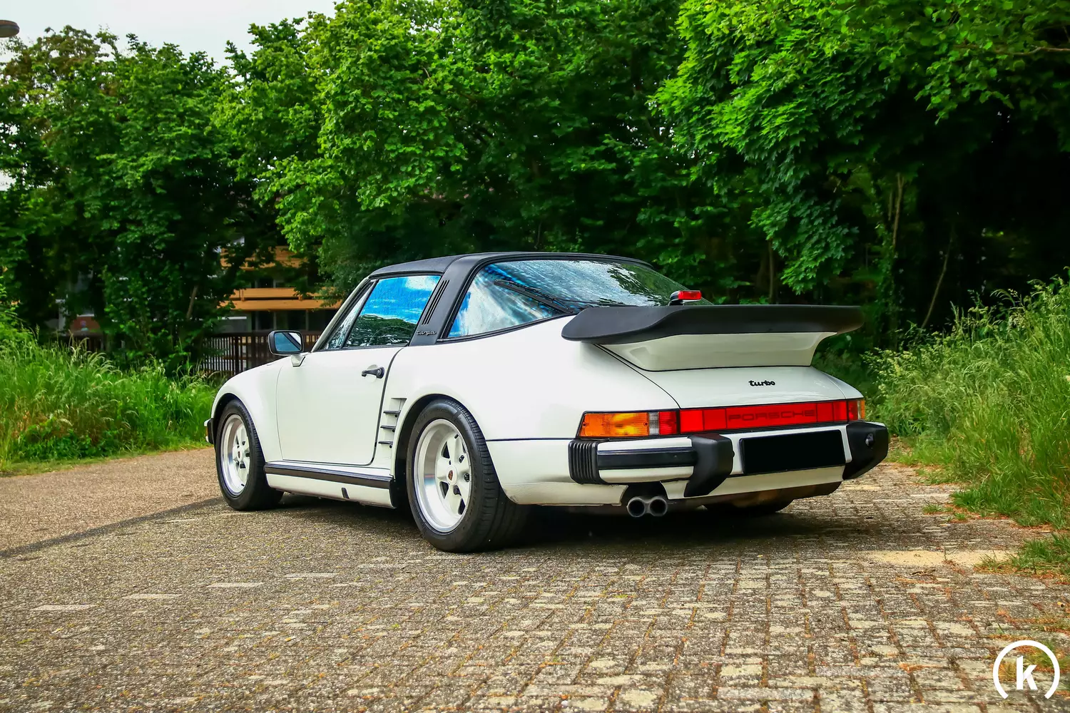 Die geschmiedeten Leichtmetallfelgen in den Abmessungen 7Jx16 vorne und 9Jx16 hinten sind ebenfalls in der Wagenfarbe „Grand Prix White“ lackiert, was zur Sonderausstattung des Wagens gehört. Den Felgen ist samt Lackierung ebenfalls ein sehr gepflegter Zustand zu entnehmen, sodass sich hier keine Mängel oder Beschädigungen zeigen. Der Bereifung in den Abmessungen 205/50 R16 bzw. 245/45 VR16 attestiert der Verkäufer einen guten Zustand. Dank regelmäßiger Warten befinden sich auch die Bremsen des 930 in guter Verfassung, Mängel in diesen Bereichen liegen nicht vor. Neben des werksseitigen Slantnose-Umbaus befindet sich die Karosserie des 930 im unmodifizierten Originalzustand. Der Wagen ist in unfallfreier Verfassung.