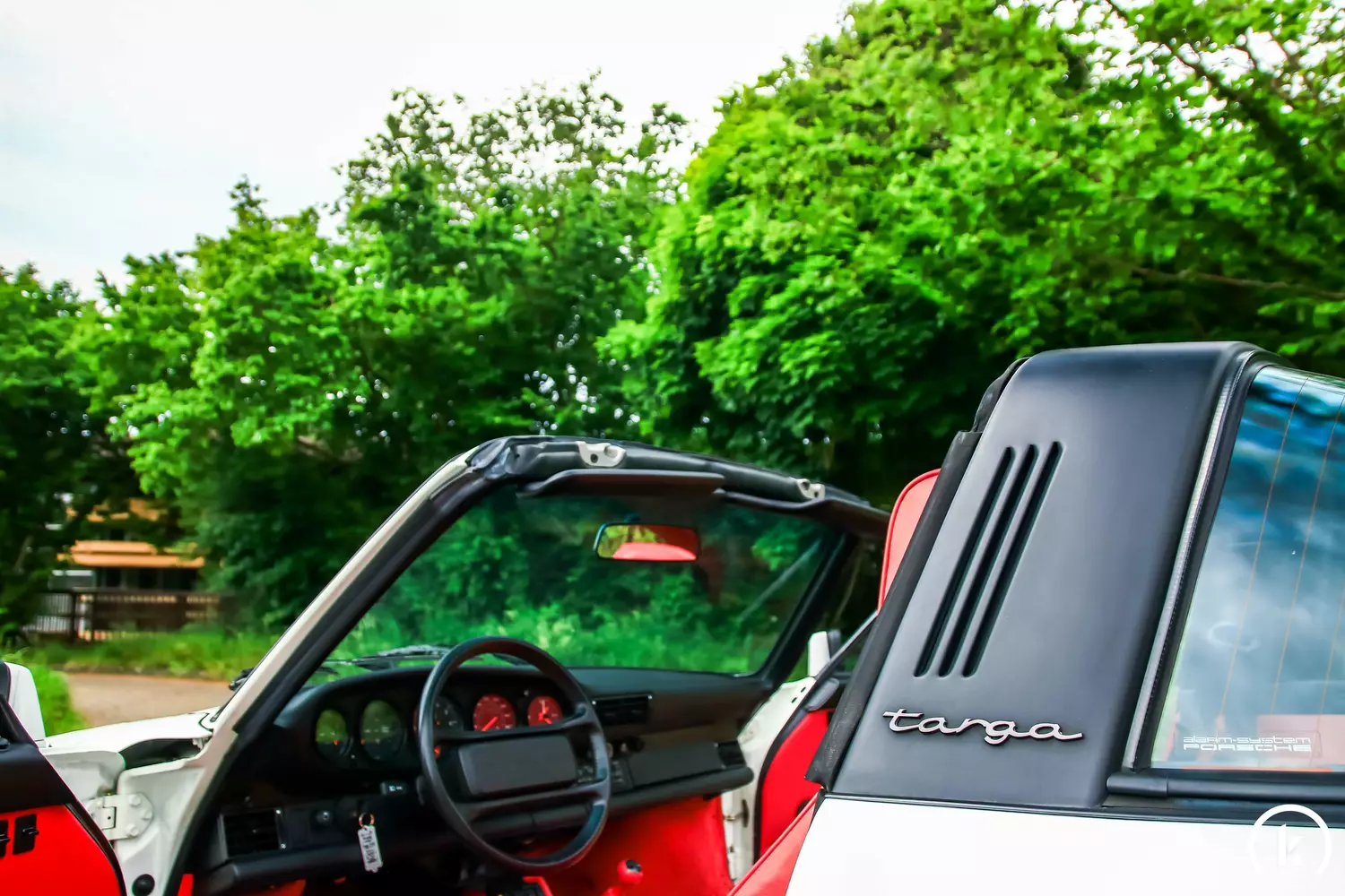 Das Interieur des Porsche ist in der Farbe „Crimson Red“ gehalten. Auch hier setzt sich der erstklassige Eindruck des Wagens fort: Die üppige Lederausstattung zeigt sich an den Türverkleidungen und Notsitzen in einem exzellenten Zustand, und selbst am Fahrer- und Beifahrersitz sind keine Abnutzungserscheinungen zu erkennen. Bei der installierten Radio-Einheit handelt es sich um das originale Blaupunkt „Reno“-Kassettenradio, mit welchem der Porsche vor 35 Jahren ausgeliefert wurde. Zur Sonderausstattung des Fahrzeugs zählen Faltdach, elektrische Fensterheber und eine Klimaanlage.