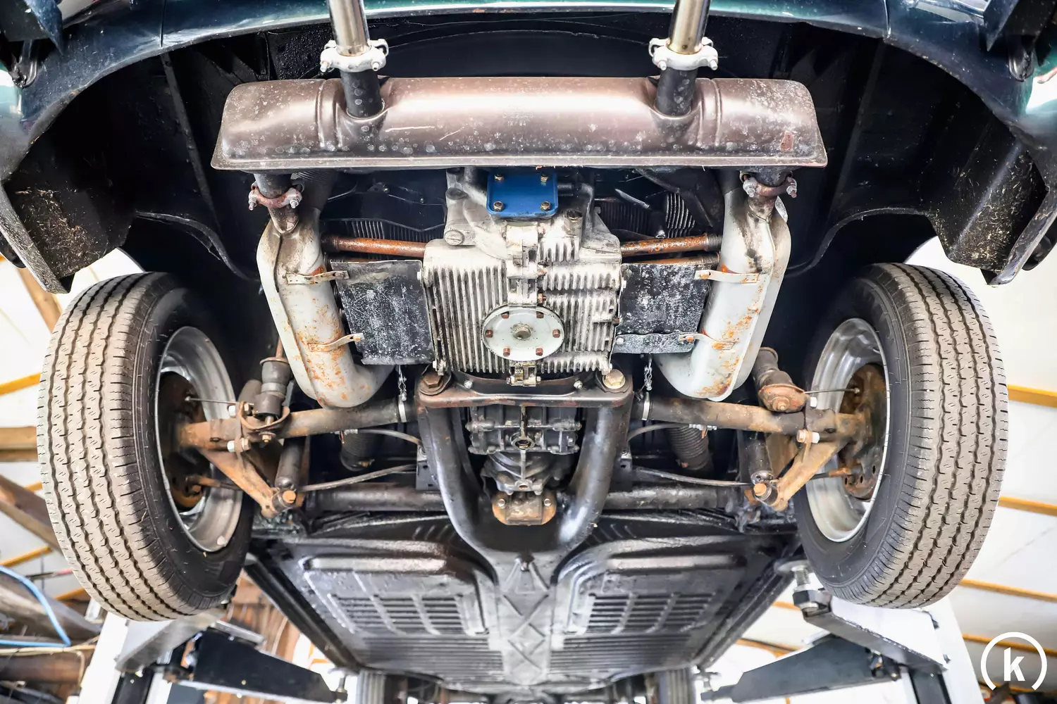 An der Unterseite dieses VW erkennt man gut, welcher Aufwand betrieben worden ist, um den Karmann-Ghia zu restaurieren: Unter anderem kamen sämtliche Achsen sowie der Tank und diverse Gummilager neu. Zwar ist der Karmann-Ghia vom Käfer abgeleitet, doch verglichen mit diesem ist der Karmann-Ghia ein deutlich aufwendigeres Fahrzeug. Vor allem die Silhouette sorgt für reichlich Aufsehen im heutigen Straßenverkehr. In etwa 300 Arbeitsstunden steckte man in den hier zum Ersteigern angebotenen Karmann-Ghia, damit er sich in diesem Zustand präsentieren kann, wie er heute dasteht. Nicht nur die Karosserie wurde überarbeitet, sondern auch die gesamte Technik erfuhr eine Überholung – dabei wurden weitestgehend Originalteile verwendet. Nun steht dieser Karmann-Ghia 1500 in einem Zustand da, mit der ein zukünftiger Besitzer wahrscheinlich noch Jahrzehnte mit gutem Gewissen fahren kann.