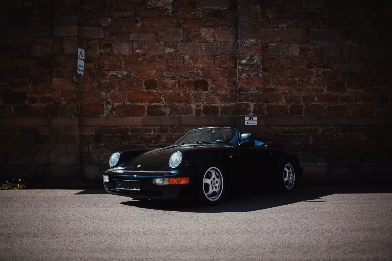 Optisch überzeugt der in Schwarz Uni (Farbcode L741) gehaltene Porsche Speedster durch seinen rundum gesunden sowie sehr gut erhaltenen Zustand. Eine komplette Nachlackierung im Originalfarbton fand schonmal statt, Unfallschäden weist der Wagen keine auf, die Spaltmaße geben sich gleichmäßig und Farbunterschiede im Lackbild sind nicht zu erkennen. Das rissfrei erhaltene Stoffverdeck lässt sich manuell bedienen und kann im geöffneten Zustand mit einer markanten Abdeckung in Wagenfarbe mit Höckern für die hintere Sitzreihe versehen werden. Alle Anbauteile sind in einwandfreier Verfassung erhalten.