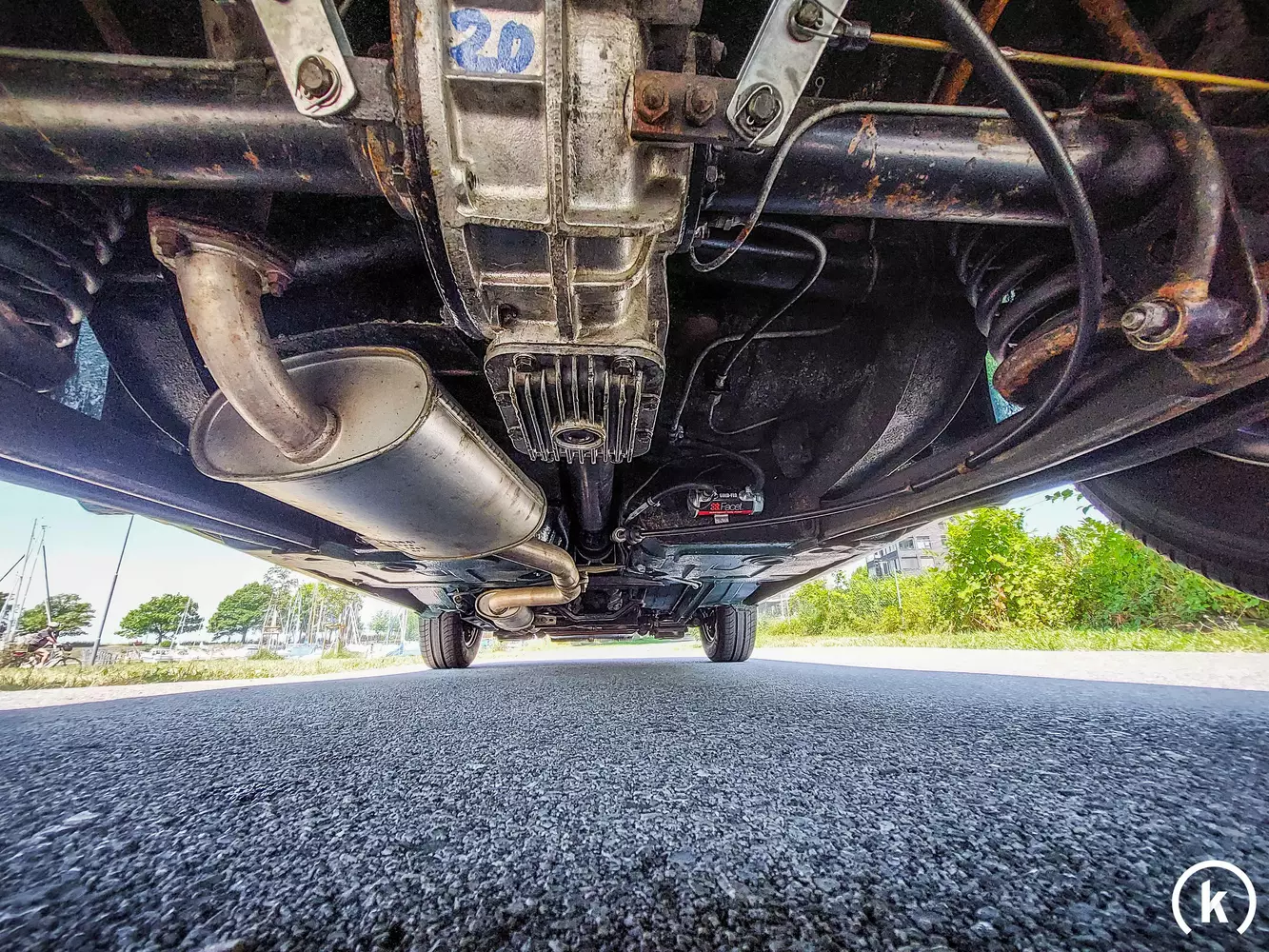 Original und in sehr guter Verfassung zeigen sich die Stahlfelgen am Alfa Romeo Bertone, auf denen Pneus in laut Verkäuferangaben gutem Zustand aufgezogen sind. Ebenfalls in gutem Zustand befindet sich die Bremsanlage mit vier Scheibenbremsen. Fahrwerkstechnisch können diesem Fahrzeug augenscheinlich keine Defizite entnommen werden.